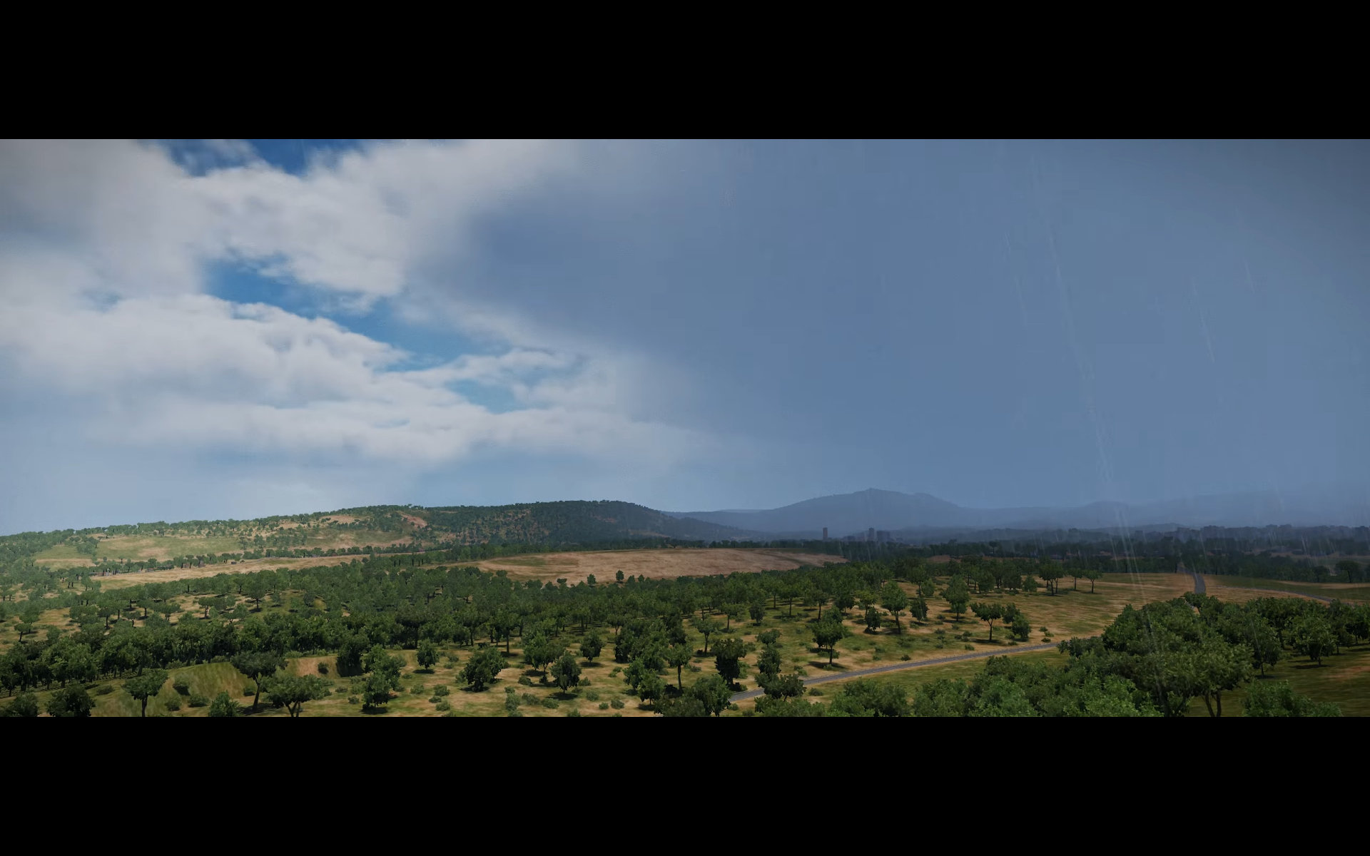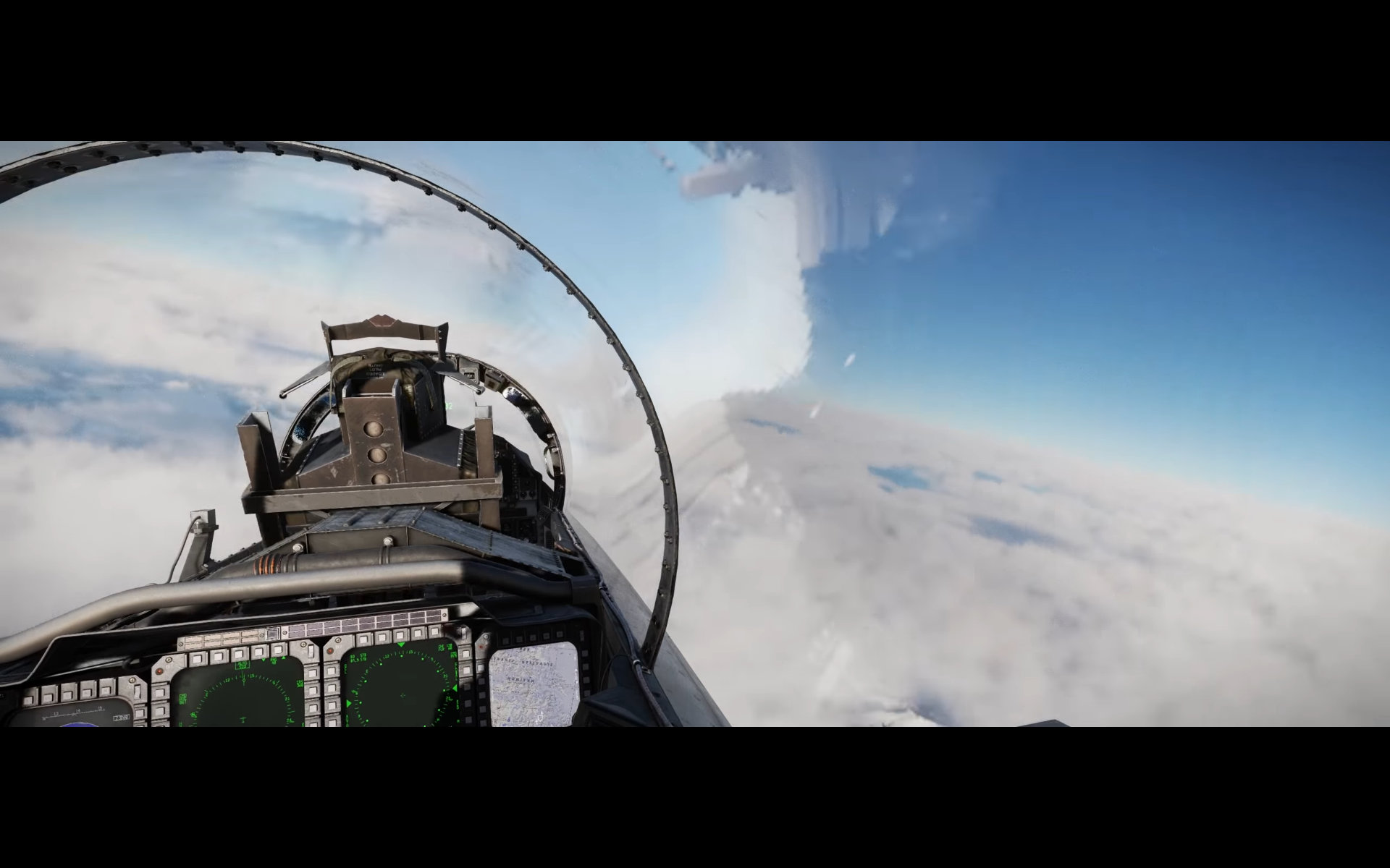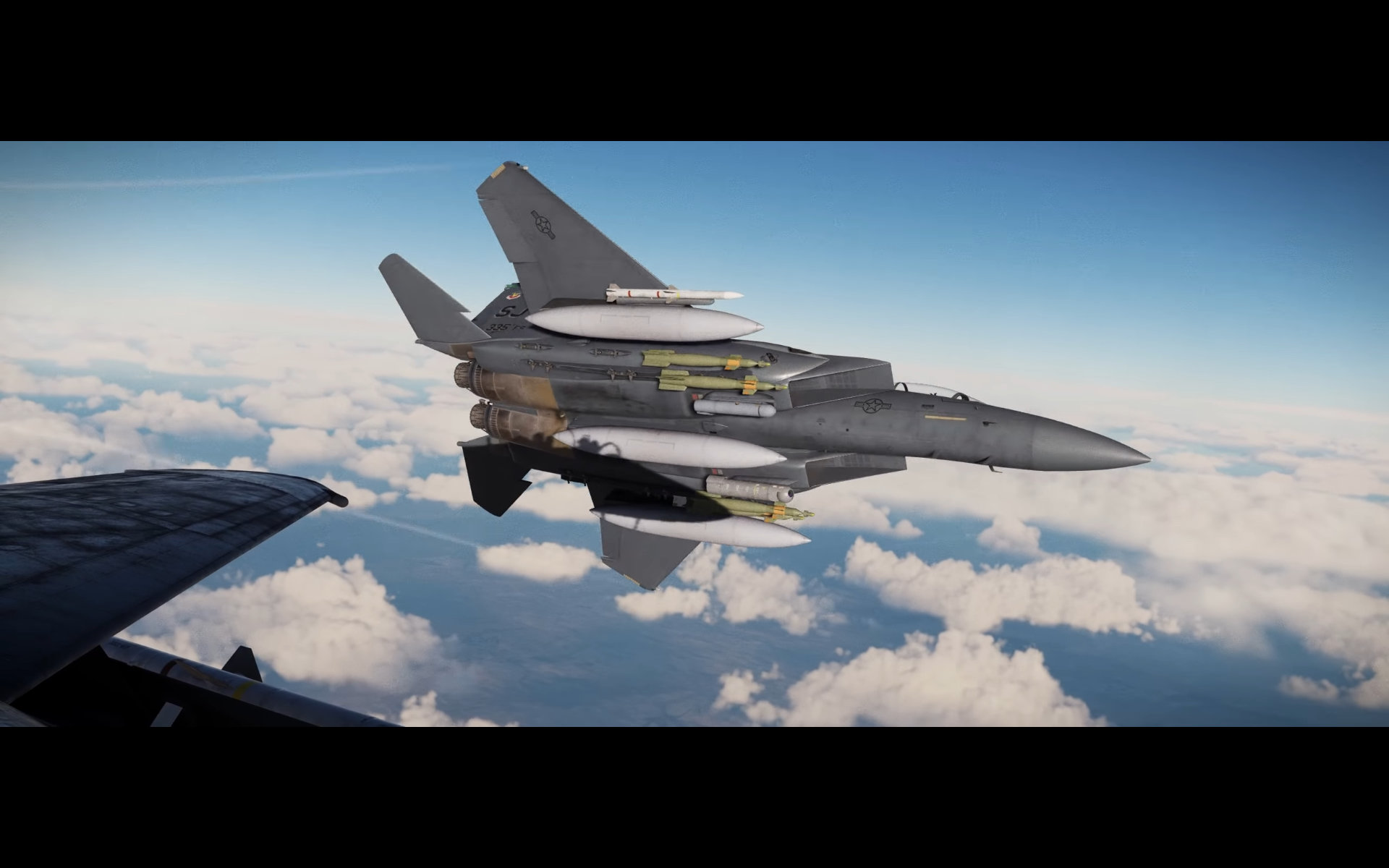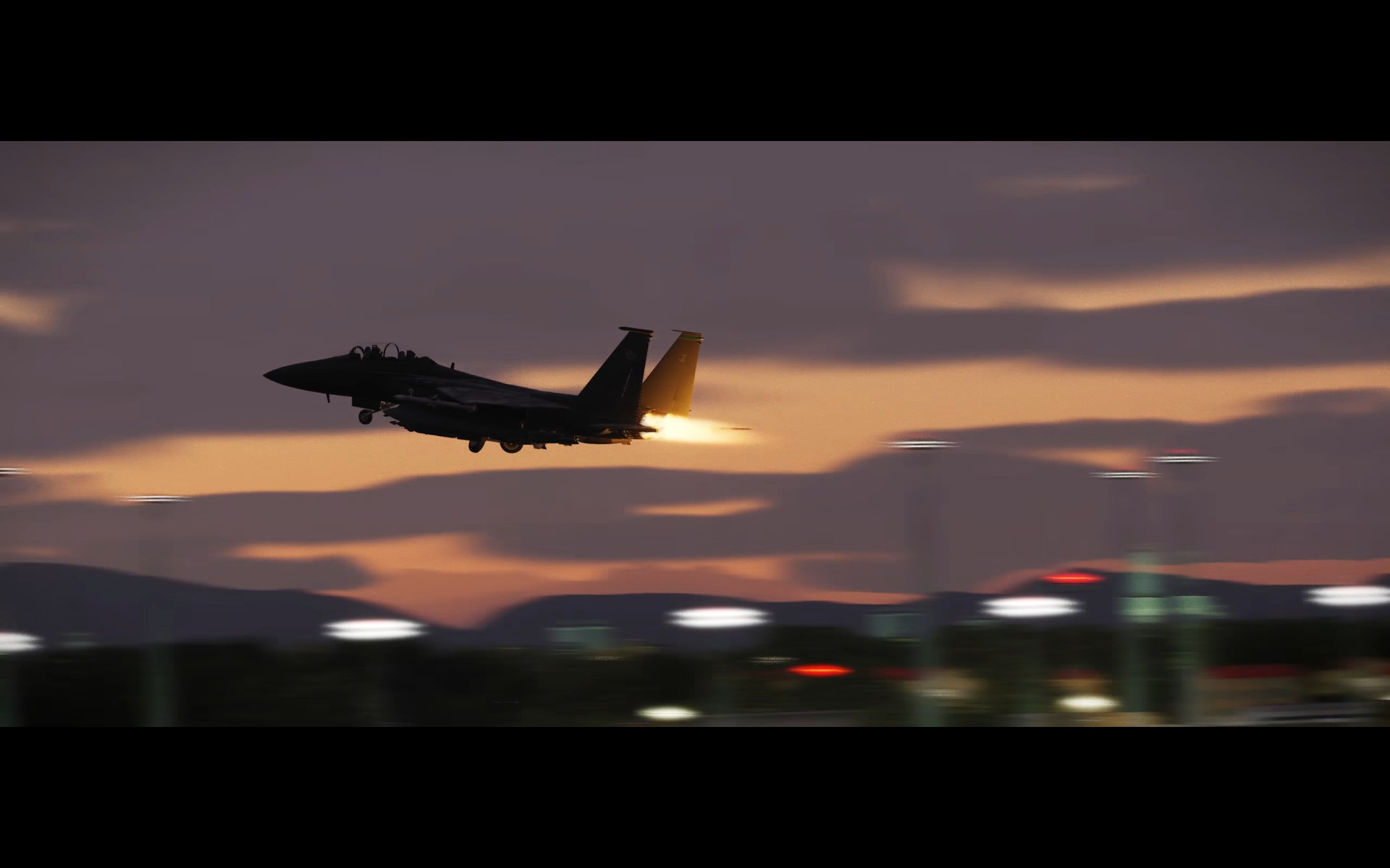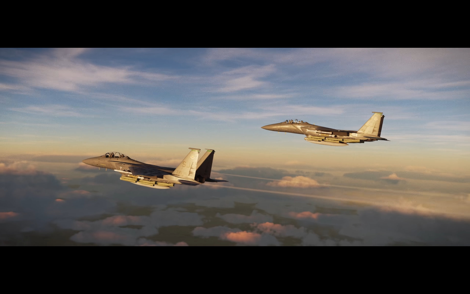 Next up, are a series of landscape shots. These are a mix of DCS: Syria and DCS: South Atlantic which is still a work in progress. Most or all of these shots show the updated weather model that is also a work in progress with moving clouds and weather fronts. And we get a really nice shot of some CF-18s and the new F-15E model exterior again.