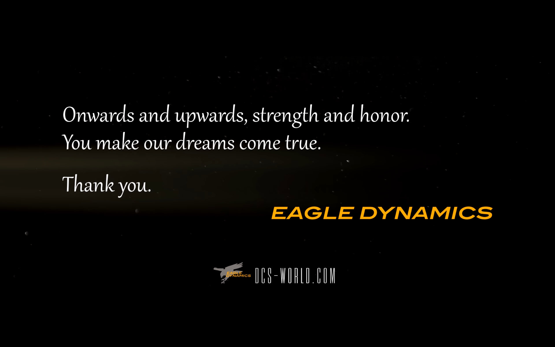 Our final shots of the trailer are the F-15E again, a big DCS logo, a thank you. And then we get into some very interesting teasers. The first is a set of coordinates, 34°56′46″N 069°15′54″E, which the community has confirmed are pointed squarely at Bagram airfield in Afghanistan. Then we have another shot which appears to be a gunsight pipper which again the community think belong to an F-4.