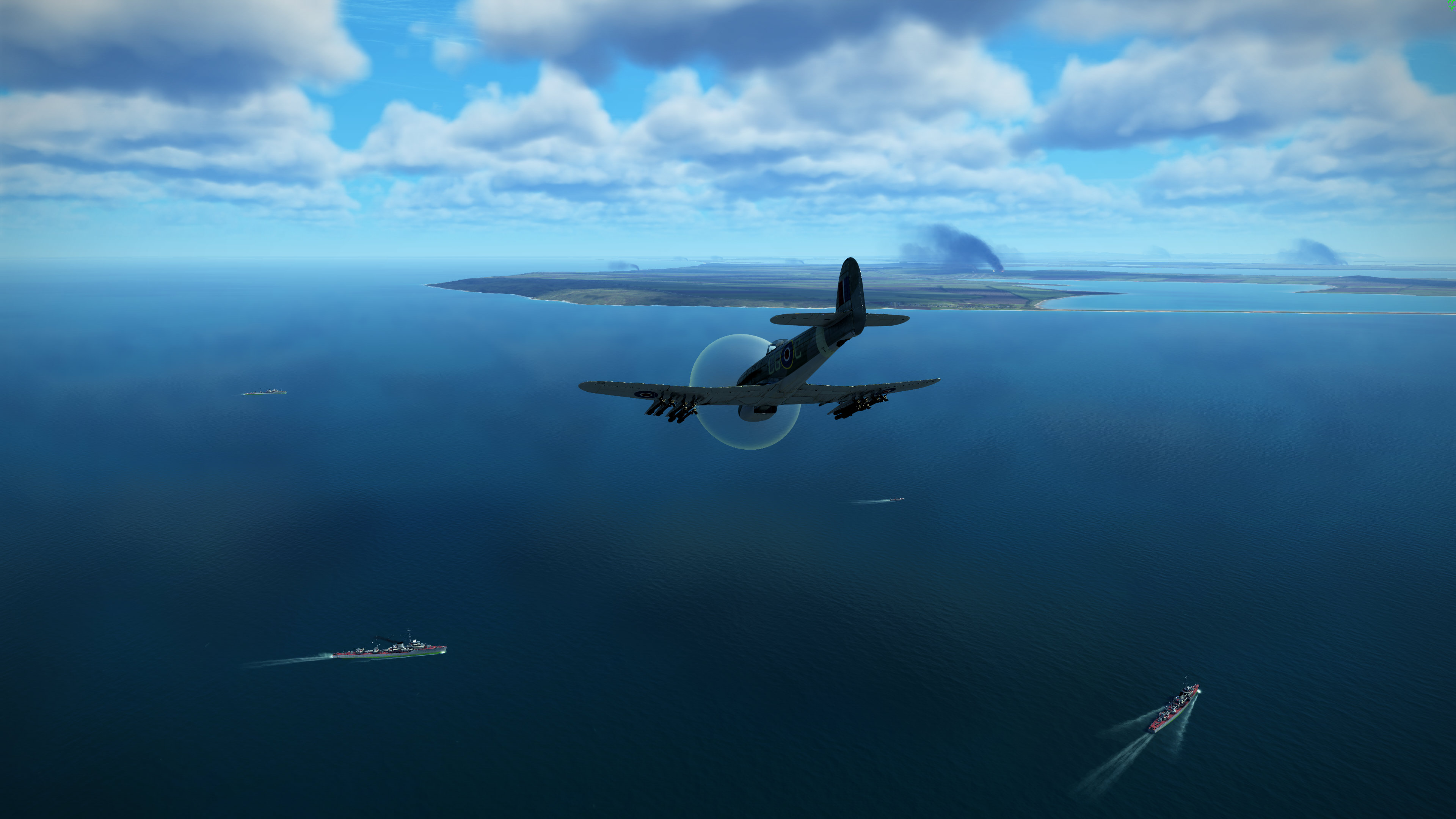 We were running low on or out of rockets but several smaller ships presented themselves as a target and they were ripe for our 20mm Hispano cannons. Swooping in we destroyed several of these in quick succession.