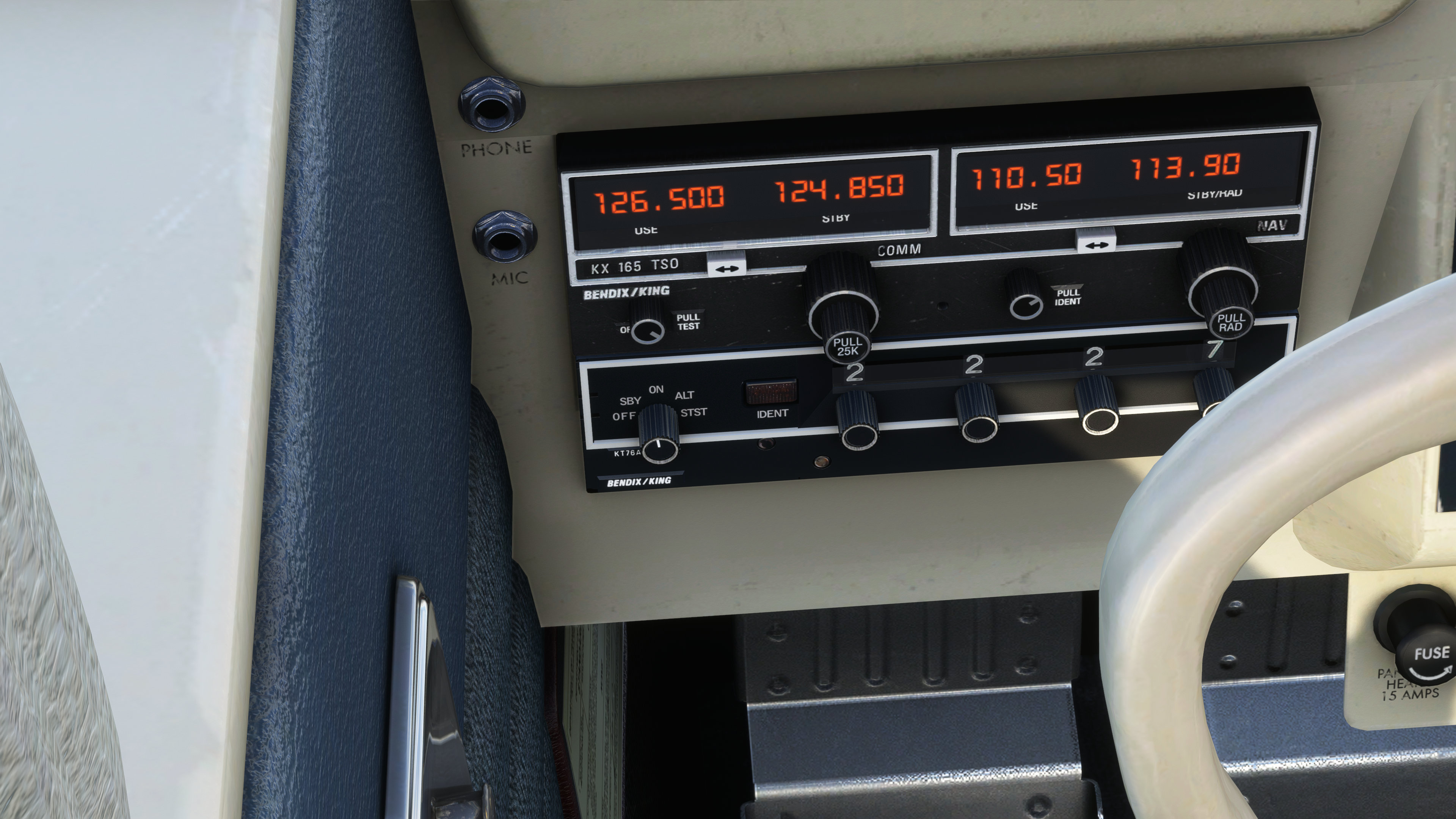 Hopping into the cockpit and you’ll notice that this is an aircraft that belongs to its time period. The cockpit is actually a beautiful design with swooping shapes on the yoke and the various controls are all controlled by pulling nicely shaped handles with 1950’s style aesthetic. The transponder? On a rotary dial that rotates the numbers, tumbler style.
