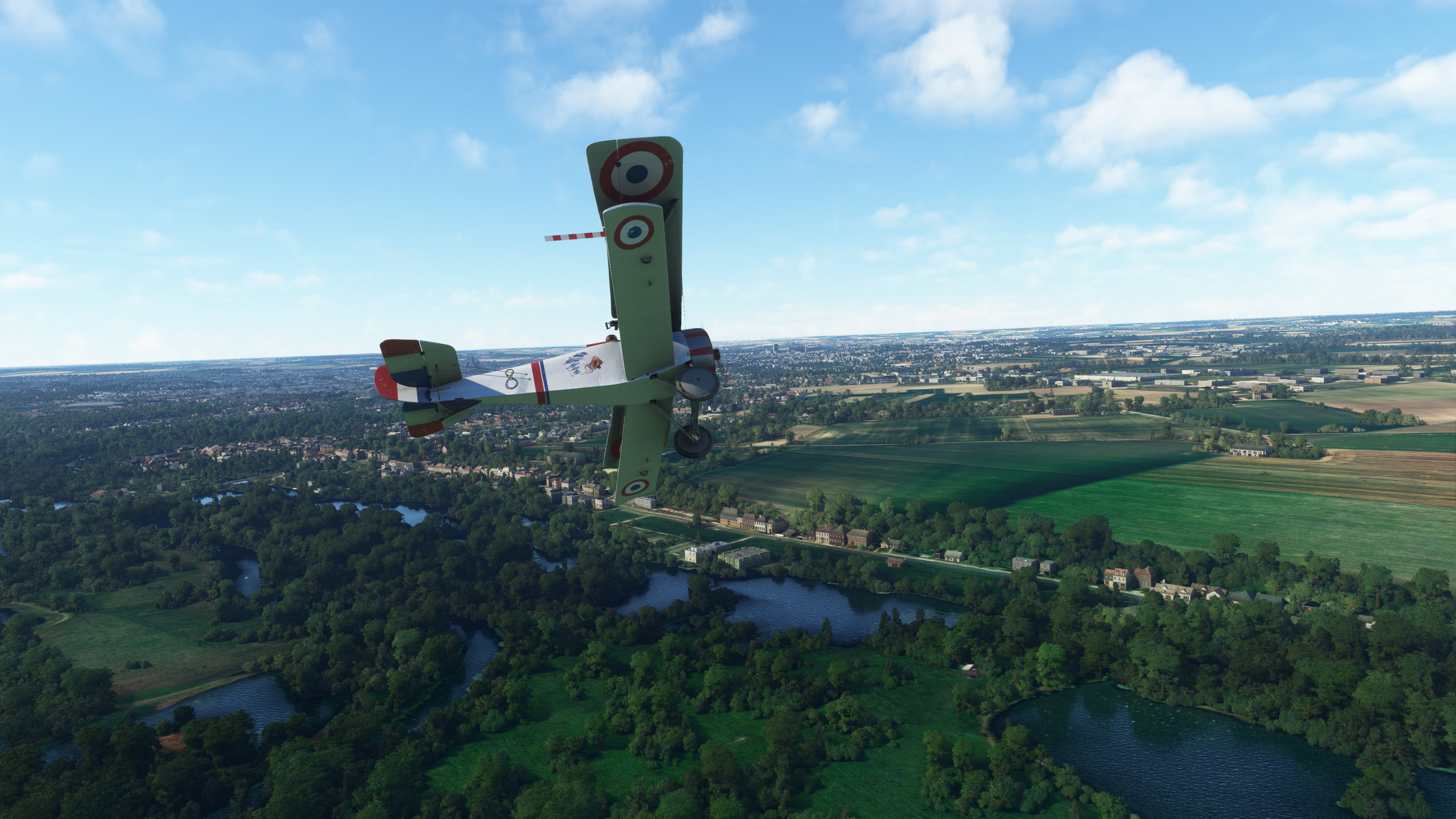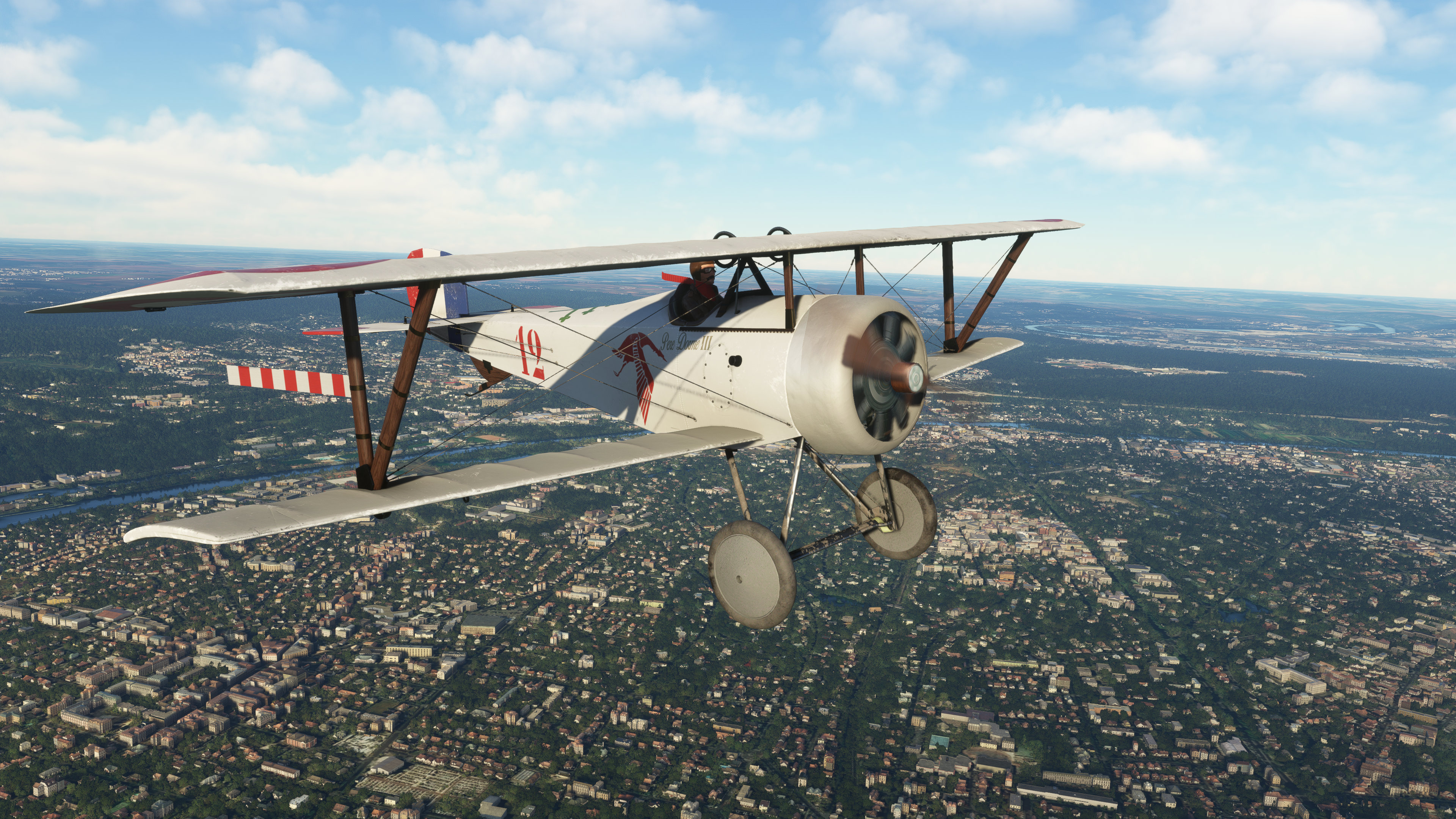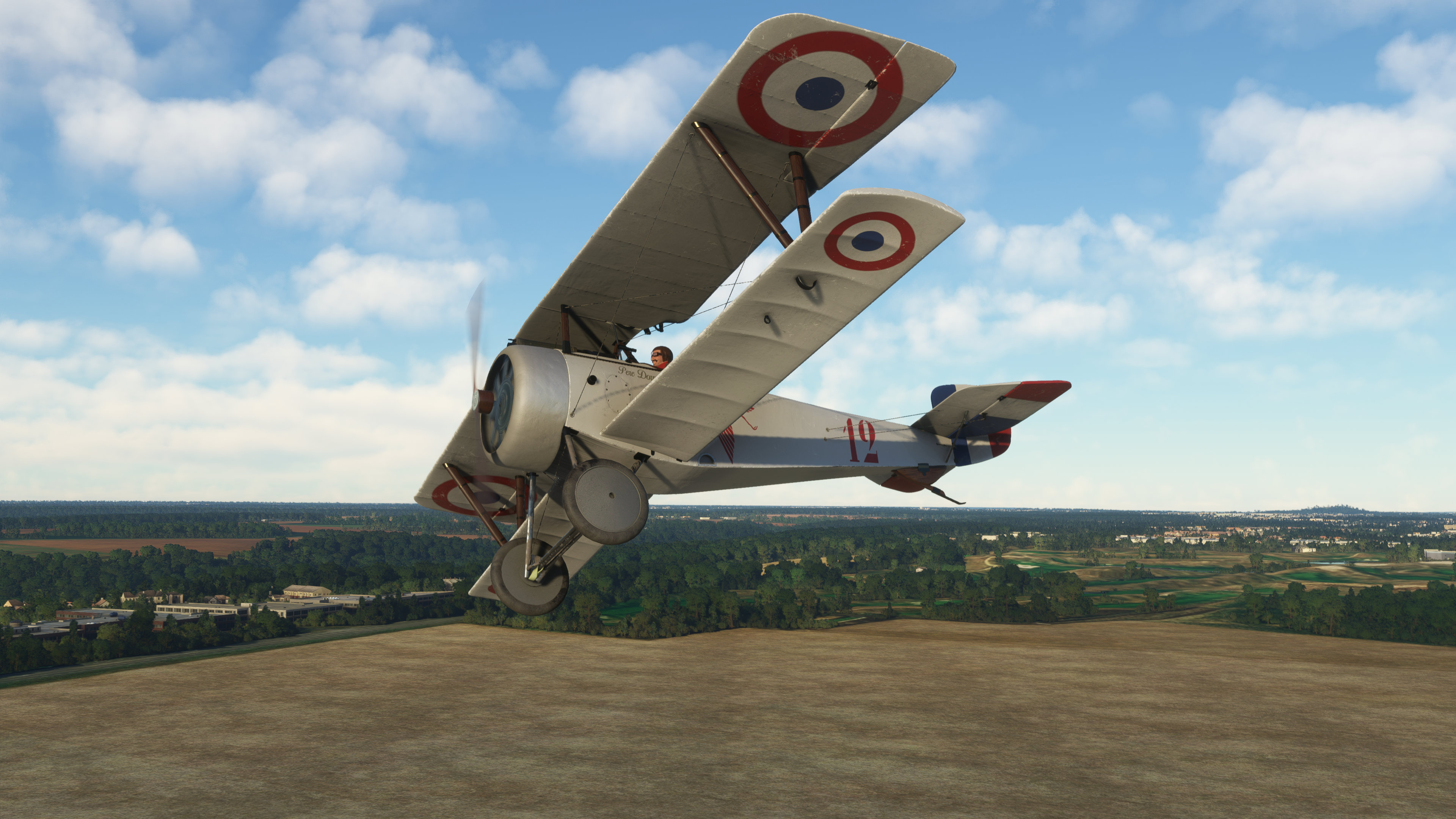 The other type of pilot wants to fly aerobatics. Sure, MSFS already has a couple of aerobatics planes, but I had far more fun with the Nieuport doing hammerheads and stalls here than with the Pits or Extra 300. The flight model is perhaps a bit forgiving (something common on MSFS aircraft) but it does have a satisfying stall model that impressed me. You can ride the edge of a stall with some good rudder work and that was immensely satisfying and even lent itself to a few hair raising moments.