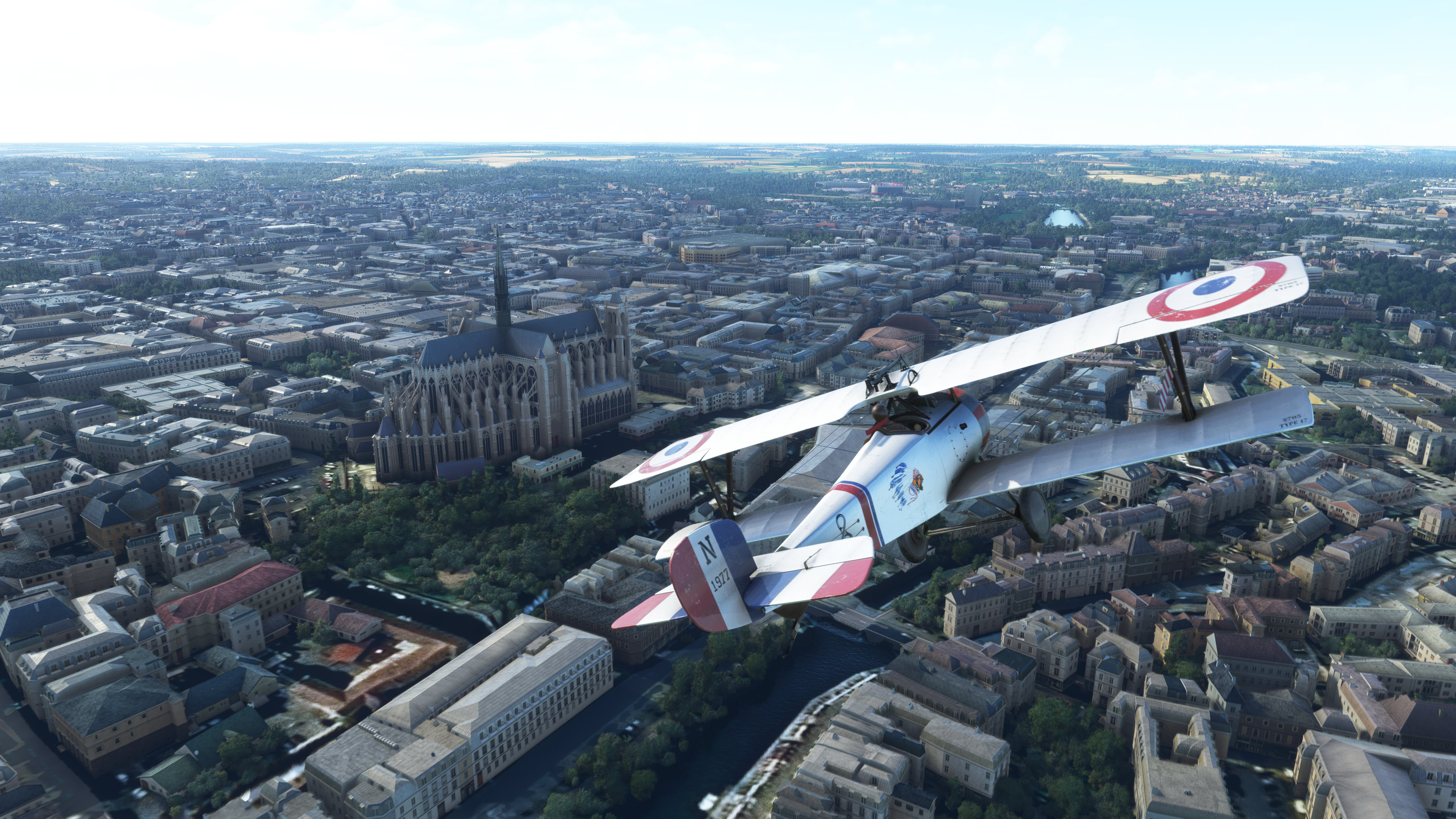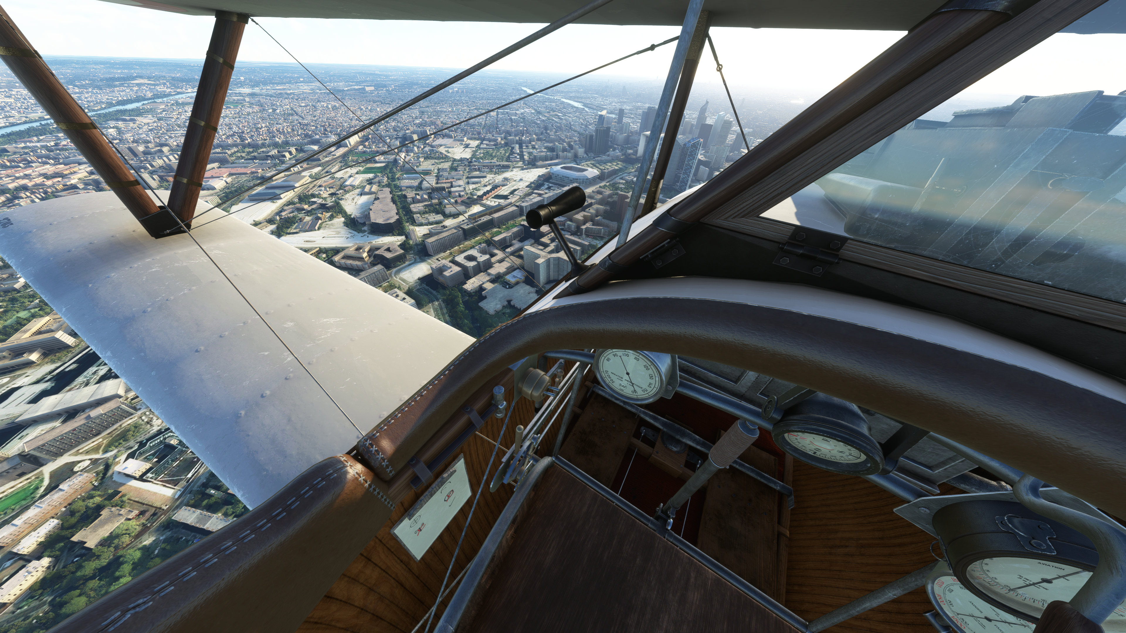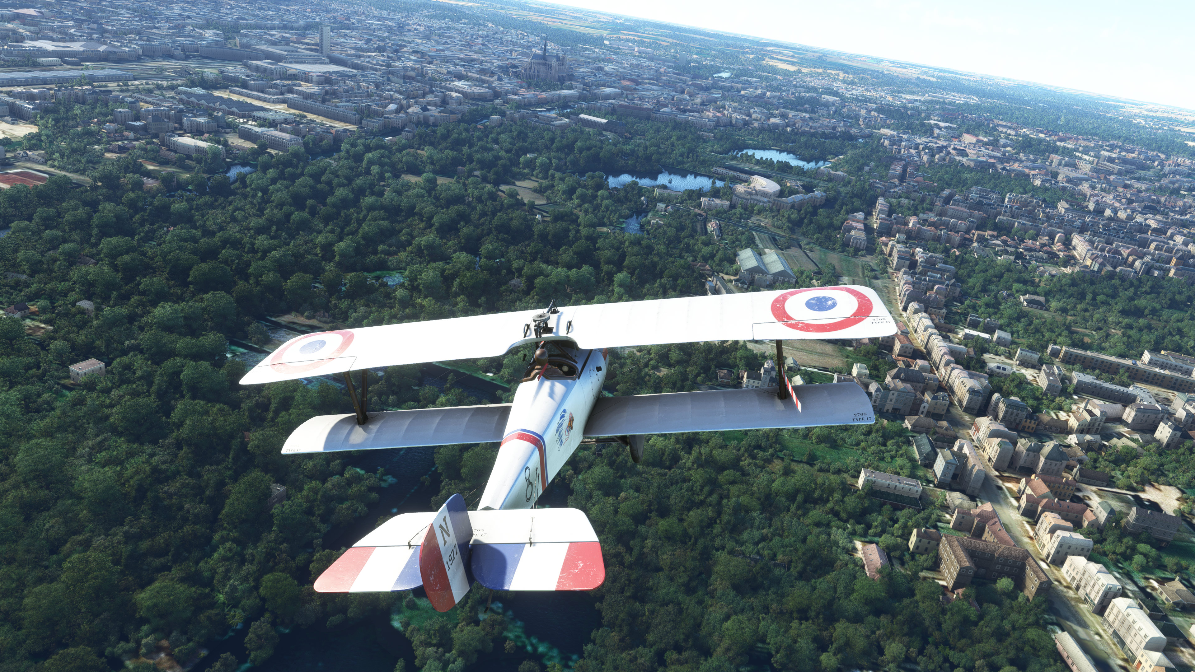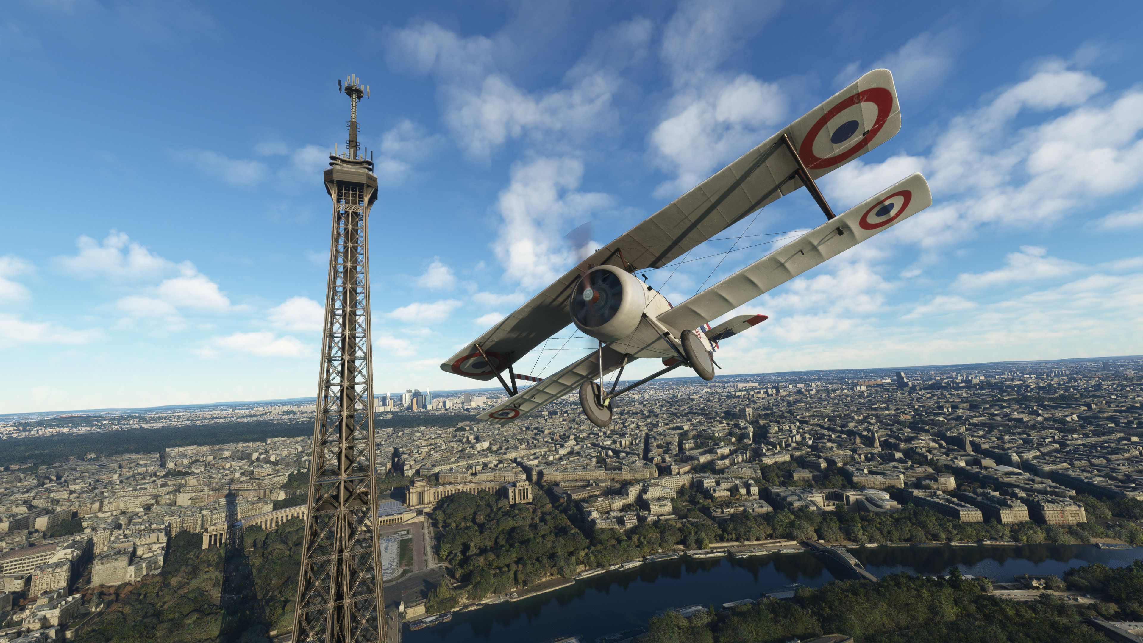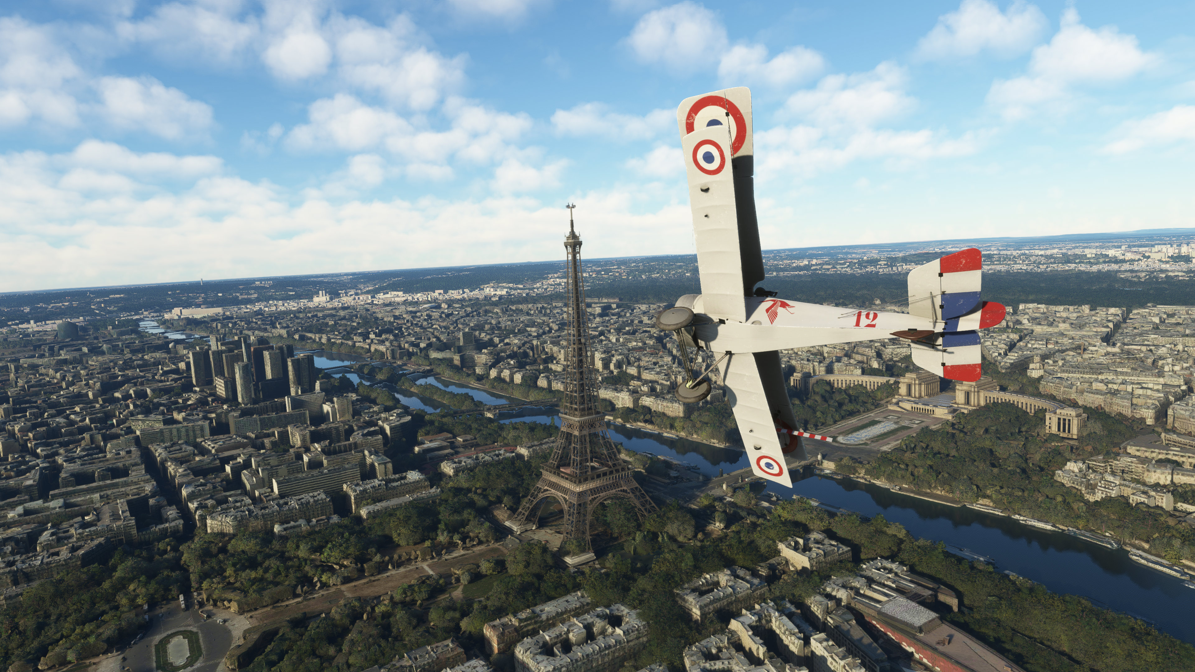 The aircraft also comes with two landing challenges and a trip (a “bush flight”) that seeks to recreate a route flown by Charles Godefroy which saw him fly through the Arc de Triomphe in protest that his pilots march in the 1919 celebration parade rather than fly.