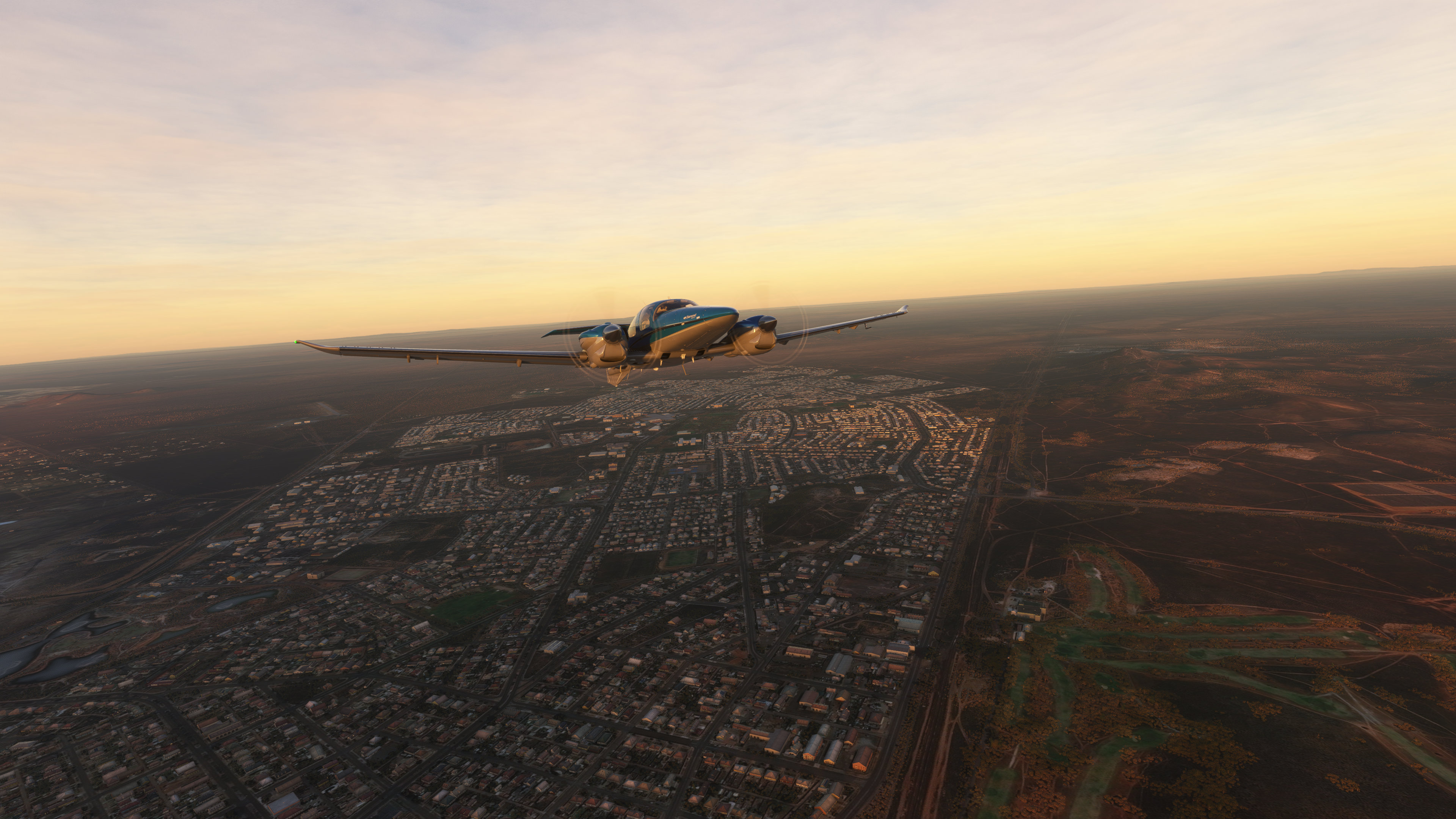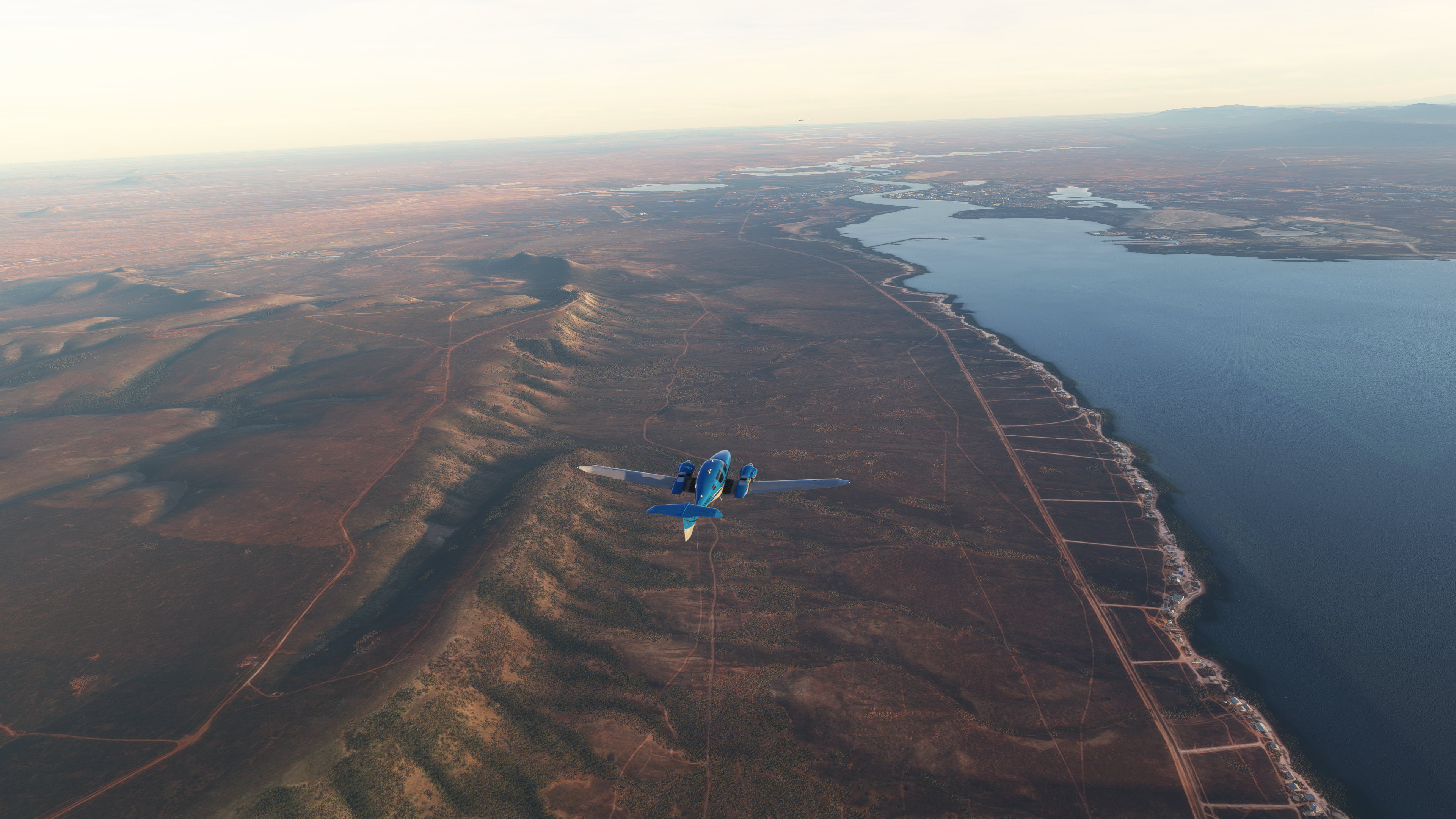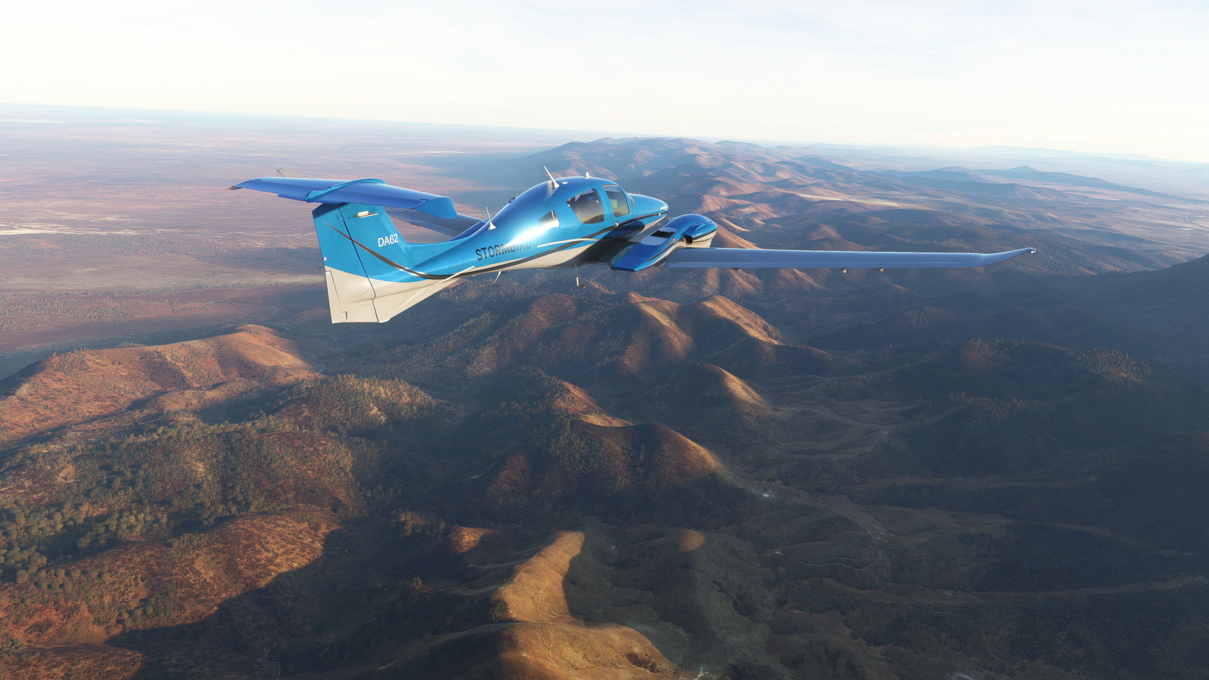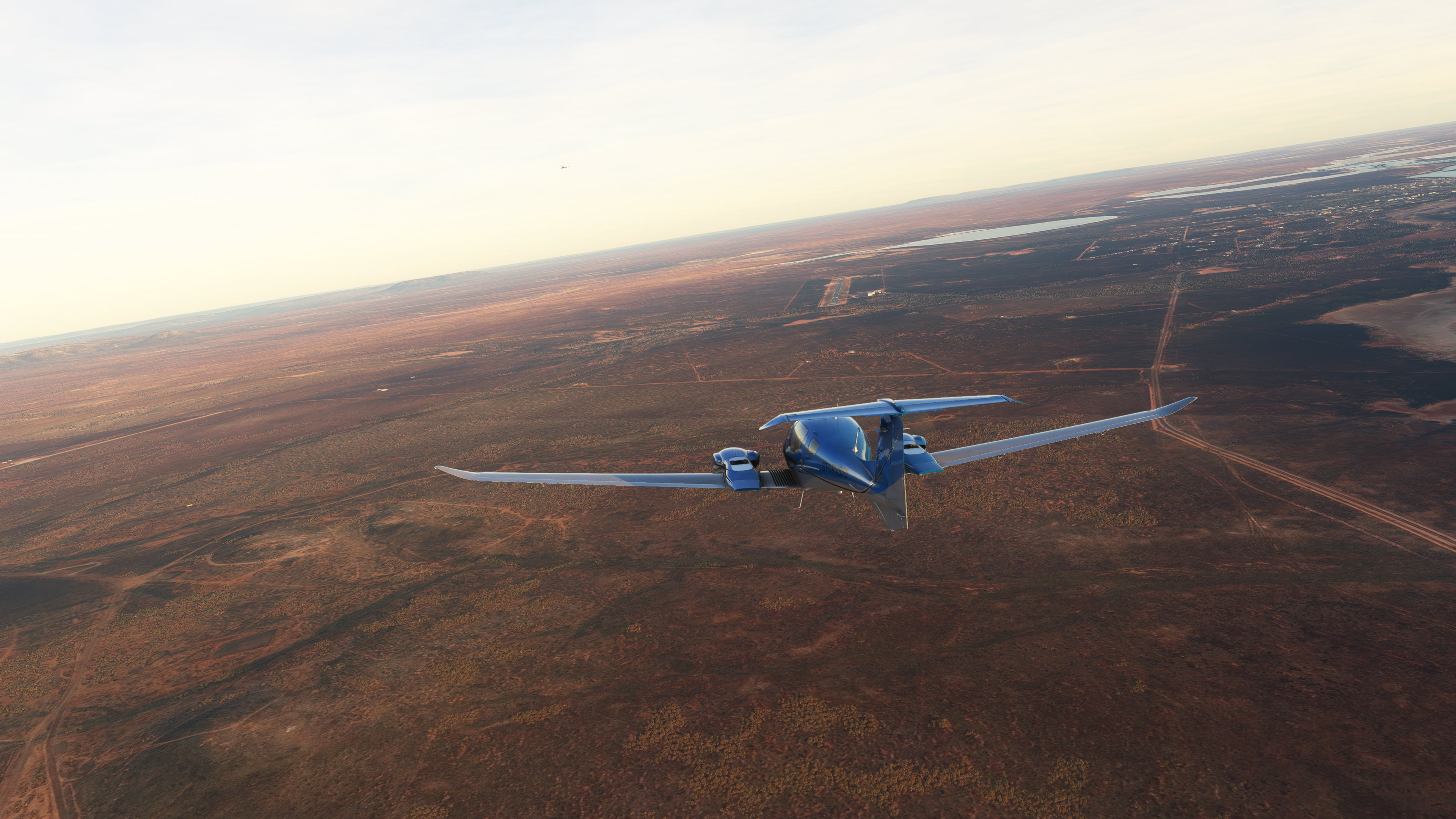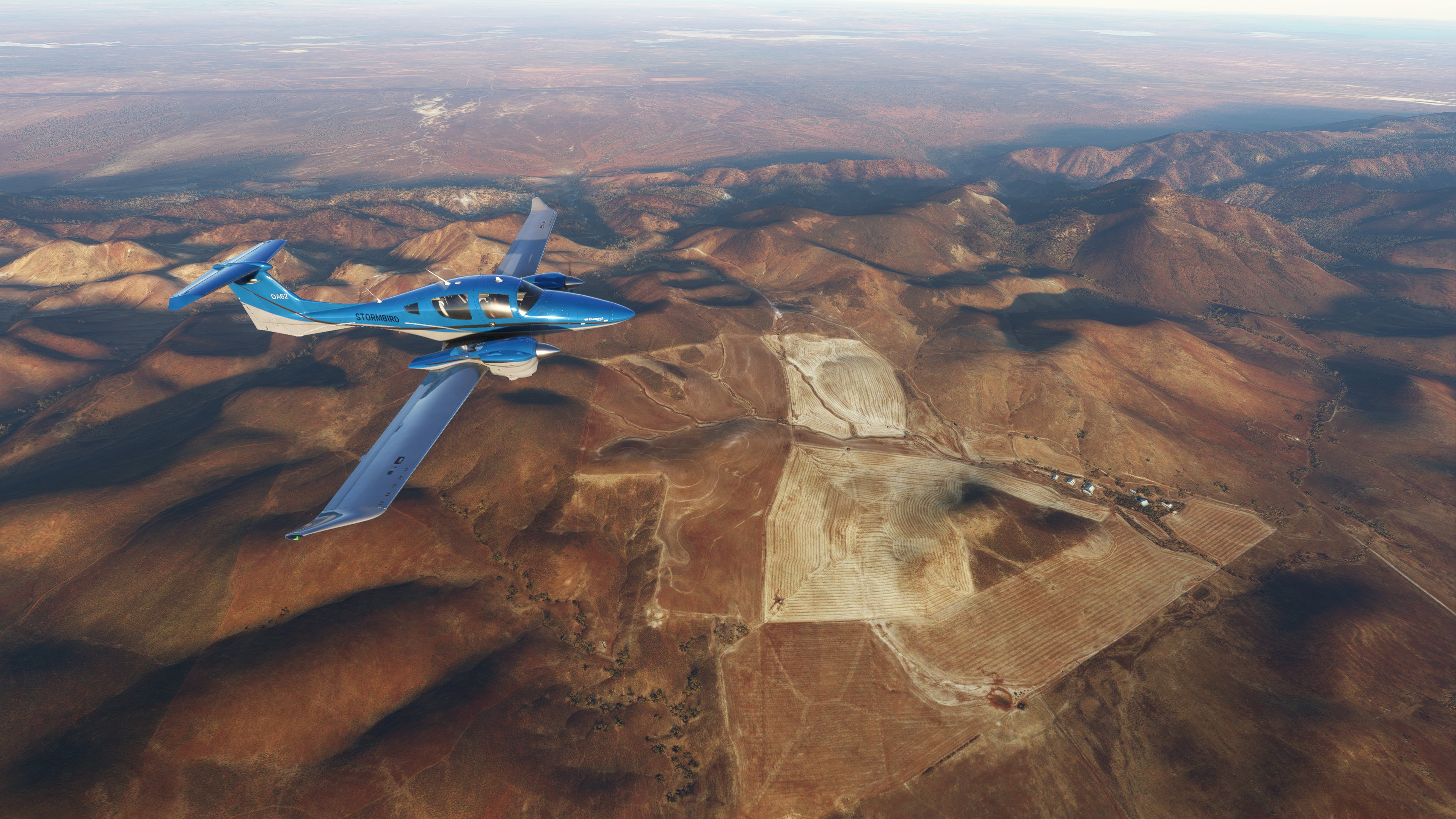 It’s been a while since I did d a bush trip in Microsoft Flight Simulator so the other day I embarked with a friend on a multiplayer trip. The trip, called the “Ocean to Desert,” is one of several trips that World Update 8: Australia added to the sim. Over the first part of the journey, it put us in the cockpit the Diamond DA62 over some vast landscapes.