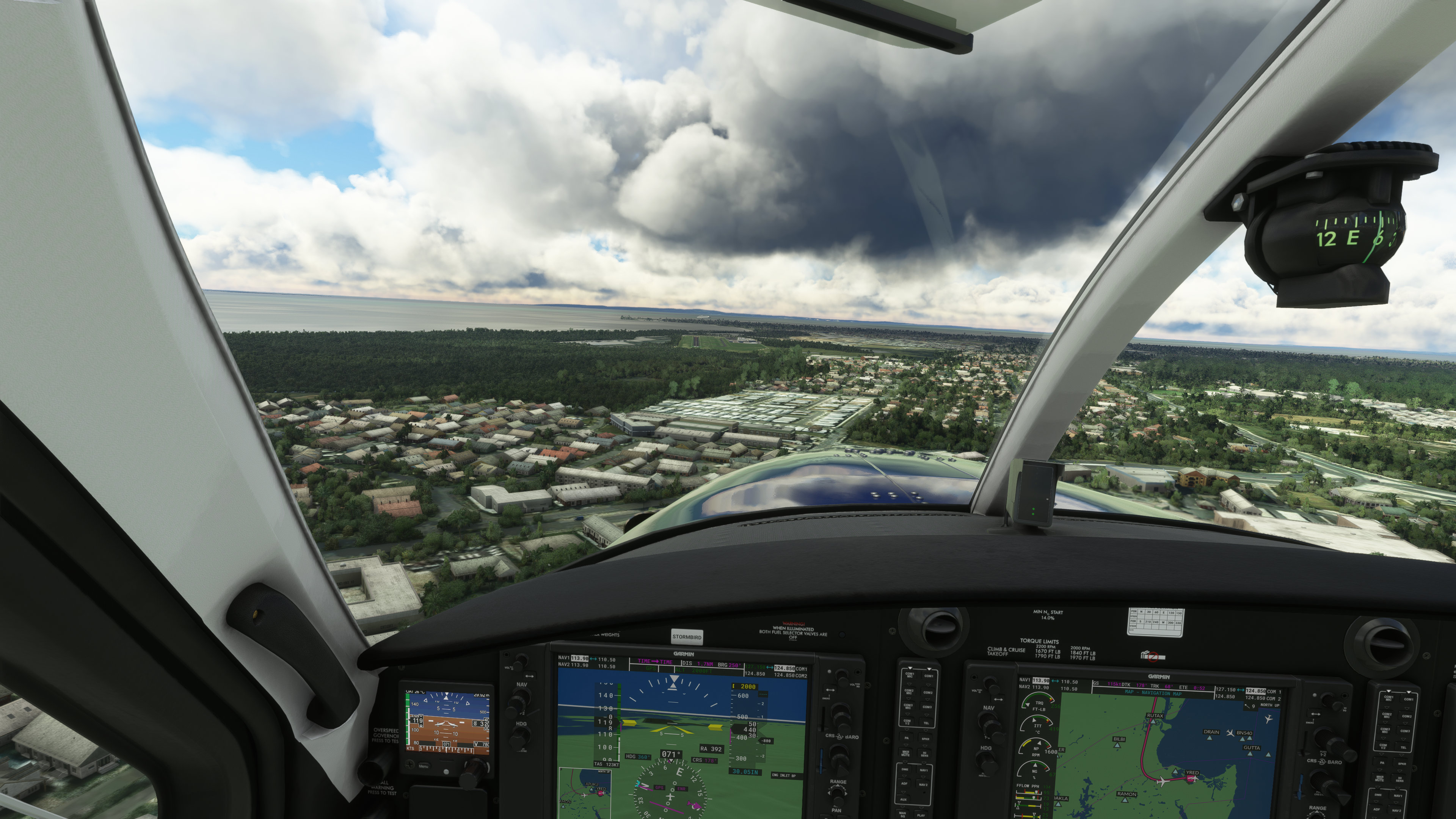 Before too long I was up at cruise altitude and making use of the types’ G1000 avionics and available autopilot to set course and cruise to Redcliffe Airport to the south.