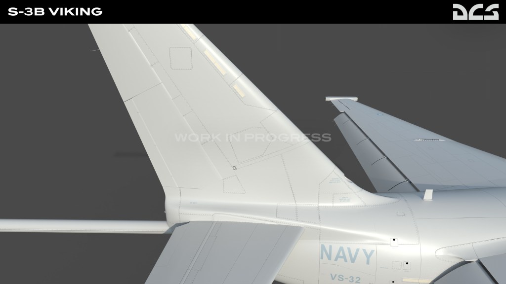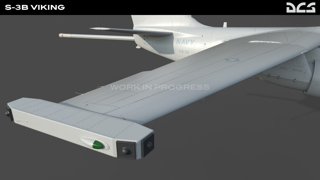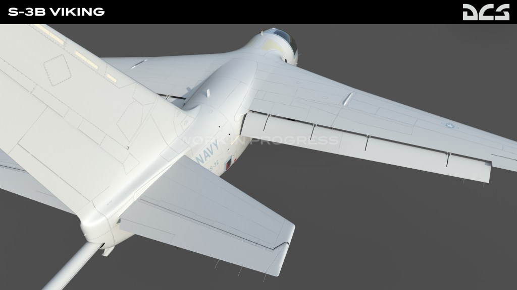 One of the older models in DCS World is the S-3B Viking. This multi-use utility aircraft has a variety of capabilities but notably the player interacts with it frequently when tanking from aircraft carriers. The upgraded 3D model will surely enhance the fidelity of the experience and here we see some progress towards a more complete model.