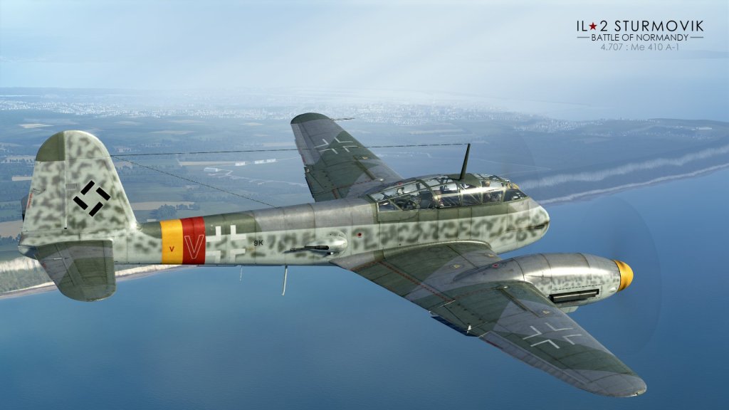 The first big update in 4.707 is the launch of the last flyable airplane for the IL-2: Battle of Normandy series. The Messerschmidt Me410 is a twin engine, multi-role fighter that saw service in 1943, 1944 and sparingly after that. Although it was overshadowed by its predecessor, the Bf110, the Me410 nonetheless brings some very interesting features such as its unique rear turret gunner position, its integrated bomb bay with swappable bomb and gun pods including the massive BK-5 cannon firing a 50mm anti-aircraft gun meant to destroy bombers.
