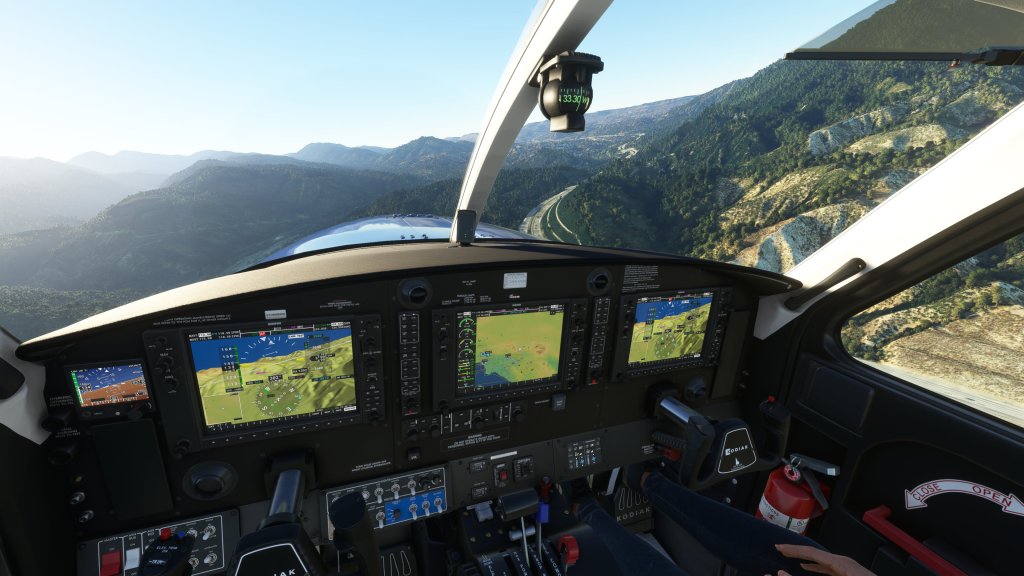 As I made my way through the pass, I noticed the ground rising up and there is indeed a steep climb here. Kicking the Kodiak 100 briefly into full power, the aircraft went into a zoom climb and I gained a over a thousand feet in just seconds – necessary to ensure that I had ample clearance.