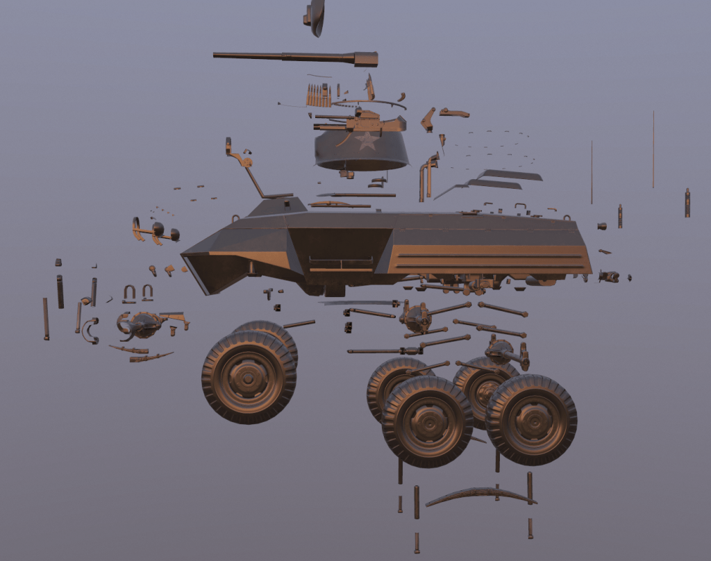We also see an M8 Greyhound in its constituent pieces.