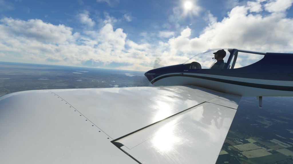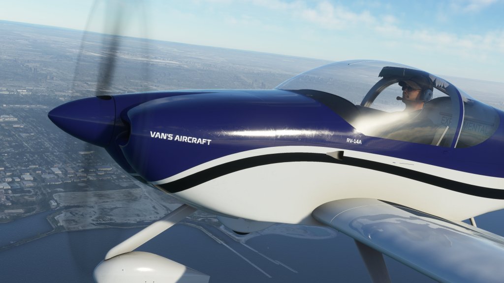 Tuned thanks to the efforts of real RV-14 pilots, this aircraft does indeed seem to hit all of the published numbers but it goes beyond that and it captures that sensation and feeling of flight in ways that few aircraft in MSFS have been able to so far. The subtle undulation of the nose as you fly through the air, the P-factor on takeoff and landing, and the snappiness of the ailerons while you do a roll all feel great. I should say that the ailerons, while snappy, aren’t super twitchy like an aerobatic performer like the Extra 300 in the sim and so the RV-14 is overall much more pleasant to just fly as well.