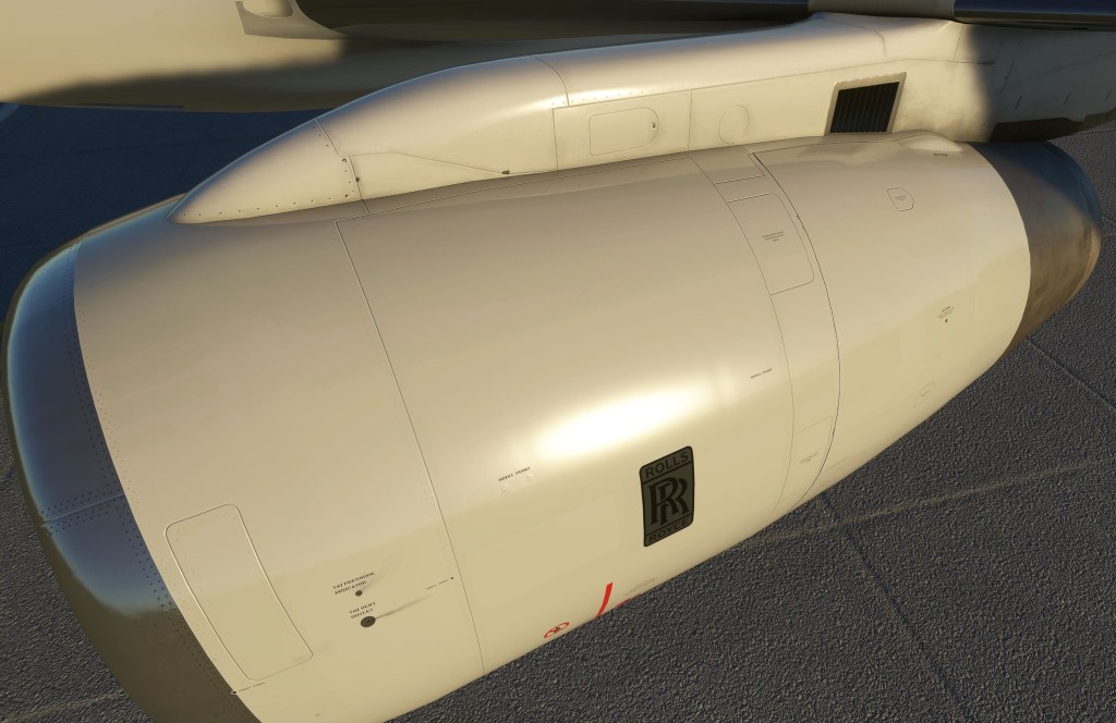 The latest updates are all detail focused both on the inside of the airplane and on the outside. A lot of images of the Rolls-Royce RB211-535 engine fitted to many 757-200 and -300 models. The P&W engine option is also planned but not visually as far along.