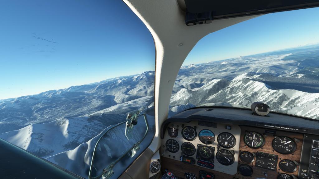 This was another runner up for one of the most beautiful and sunning flights I’ve ever done in a flight simulator. One of the things that I love to see is the transition between one very distinct set of geological formations to another. In this case going from snowy mountains to a red-sand desert region and the world famous Buttes.