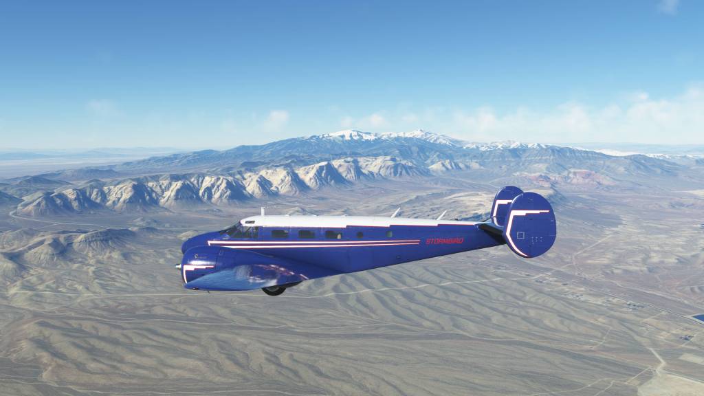 For this next leg, I decided that it was time to bring the Beechcraft Model 18 back into service. I figure handwaving some story about a miraculous restoration of my crashed Model 18 was sufficient to get back to the original vision of this project. I wasn’t disappointed in the choice as the Model 18 has a ton of personality – although so does the v-tail Bonanza!