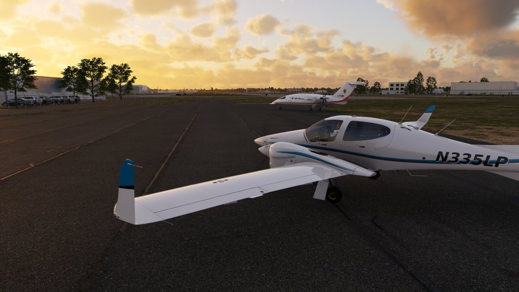 I found a FBO and taxied over. In real life this is the US Aviation Jet Center and the DA42 didn’t seem too out of place with the aircraft parked there in the sim nor the SR22 and RV14 that I spotted on the satellite imagery.