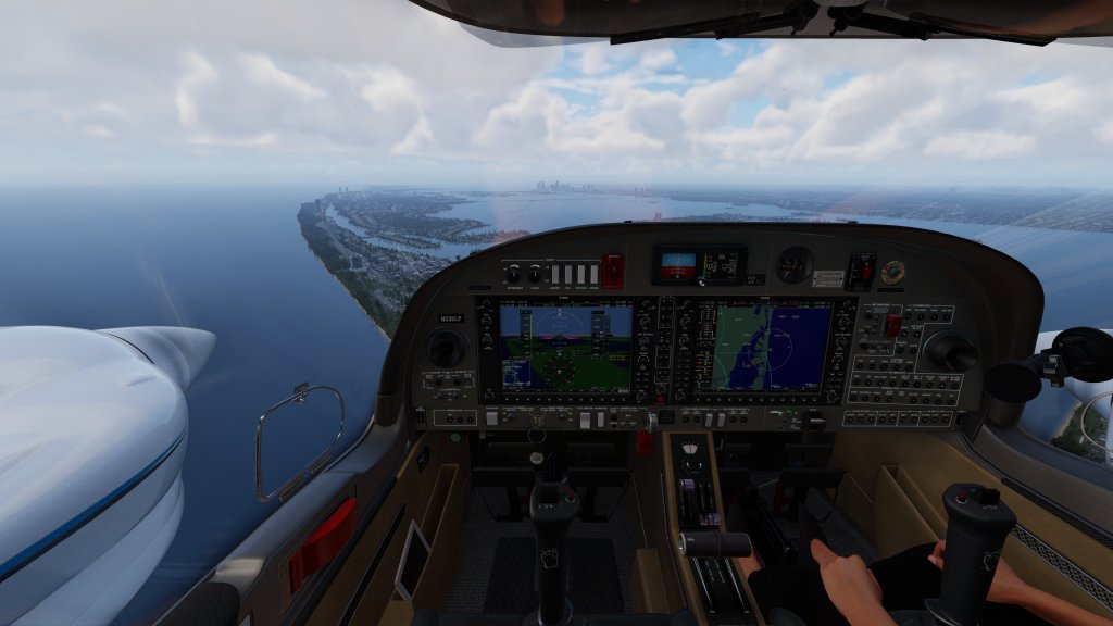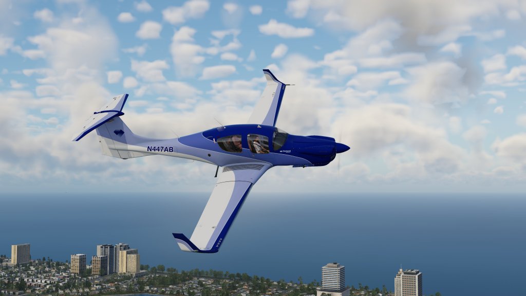 There’s a suitable roar for the DA42s engines both inside and out, cockpit sounds of the air flowing past attenuate and pitch in appropriate and authentic sounding ways, buttons and switches make differing noises.