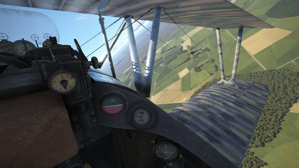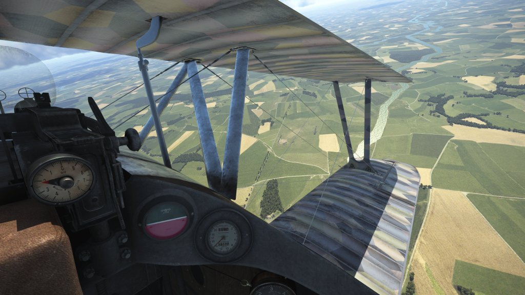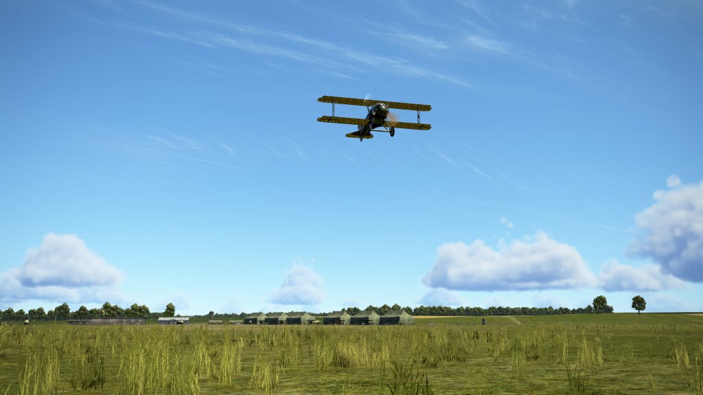Starting up the D.IV, I was reminded that this is a rare German type that has a manual mixture control (most are automatic in this time period). Once the engine and its four bladed propeller had been started, I was ordered to taxi and takeoff with the departing Fokkers. Takeoff comes quickly in the D.IV and the fighter leapt into the air. Before long I had joined up.