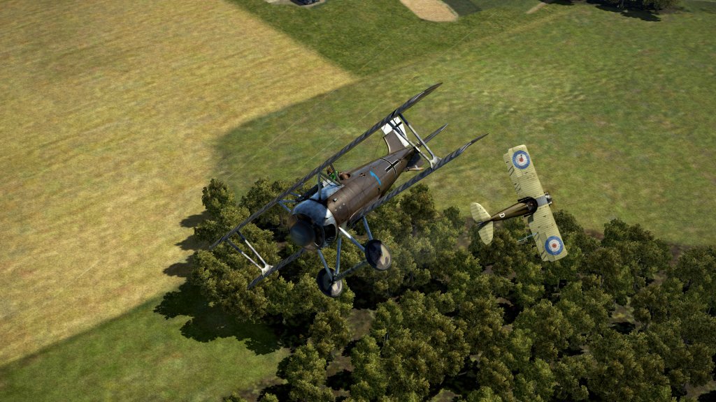 Within moments I was down at the level of the battle and dropped in from above onto my first SPAD. I raked him with some fire from my twin LMG 08/15 machine guns doing damage but nothing critical.