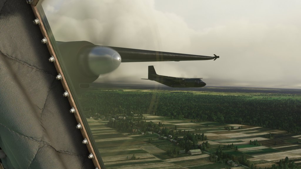 At maximum power, even at MTOW, the C-160 in MSFS seems to be able to maintain an impressive sea level speed of 200 knots. That was counterproductive for our desire to fly together and so we backed off the power some and ensured that we were in a safe operating power level – not having read at the time if AzurPoly had implemented failures (they haven’t).