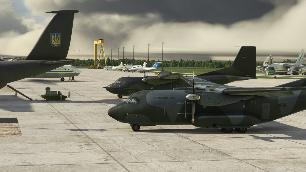 Parking our C-160s also gave us the opportunity to enjoy the scenery at the airport with the showcase of Antonov aircraft and the massive hangars setup to support them.