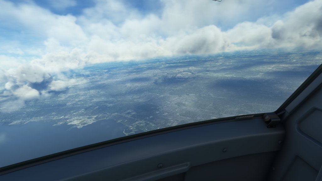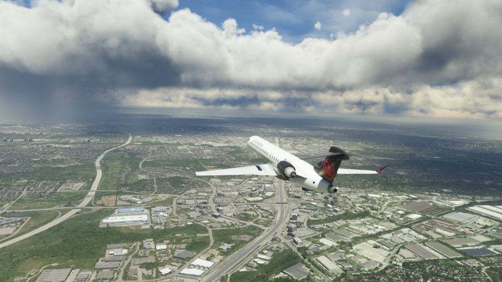 That’s the environment I flew into as I made the shot hop from London to Toronto. The flight went mostly smoothly with me having ironed out some of the quirks from prior flights and keeping a close eye on the speed indicator (overspeed has gotten me a few times). On the way we passed through a developing thunderstorm with a few brief flashes of lightning. Then it was time to line-up on Toronto’s runway 05 for a landing.