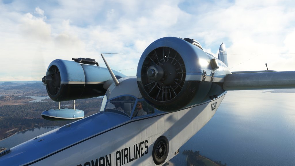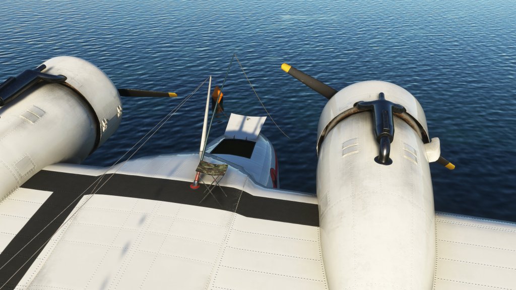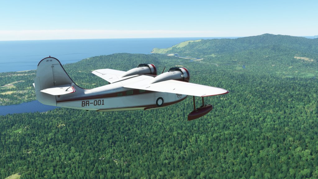 Other variants were constructed for various military applications including the US Army and US Army Air Force, Portuguese Naval Aviation, the Royal Air Force, Royal Canadian Air Force, and the United States Navy. It’s a USN version that Big Radials has modeled for Microsoft Flight Simulator with more spartan accoutrements in the back. The JRF-6B, as it was known in USN service, was primarily intended for navigational training and a transitional aircraft to other amphibious types.