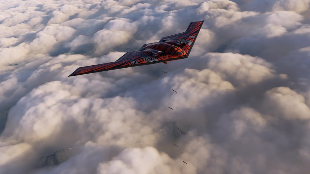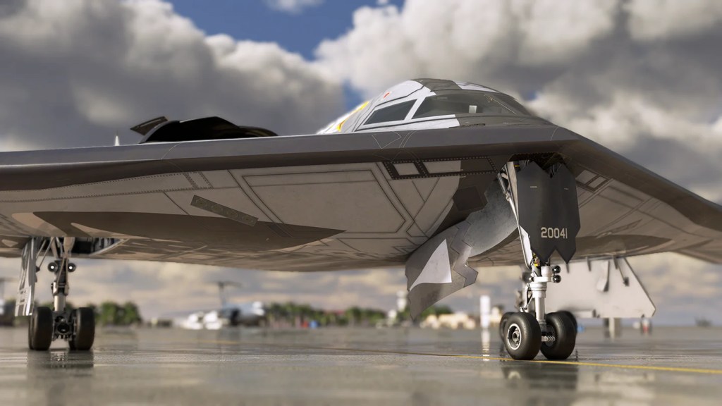 1. It also has a realistic livery, the gray that all B-2s wear. My theory is that if they just put that livery with the airplane people would complain about the lack of liveries…. So they had to come up with something a little quirky.