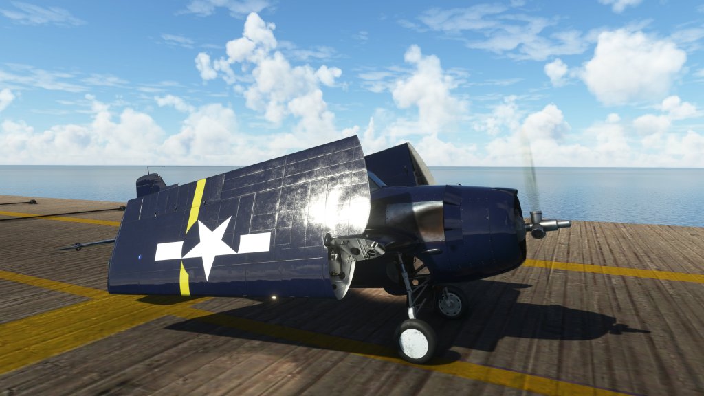 Seeing as the F4F is a famous carrier fighter, I went searching for some carrier experiences with this aircraft. Got Friends have ensured that the aircraft comes with Touching Cloud, Jay Shrike, and Supercarrier Pro support out of the box meaning that a variety of carrier products should be compatible with the F4F.