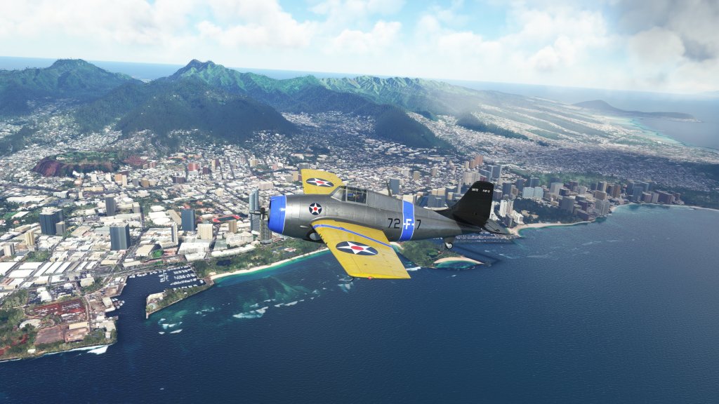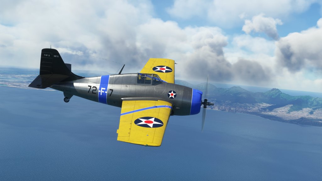 Now, its not all roses here as I think MSFS’ model still holds back aircraft developers. The F4F feels appropriately well modeled yes, but its still not quite as fluid as an IL-2 or DCS warbird is. It still feels a little too stable around the nose and a little too quick to recover from a stall. Still, all things considered this is still top notch for what MSFS can offer and in all the practical ways this flys, feels, and behaves the way I expected it to.
