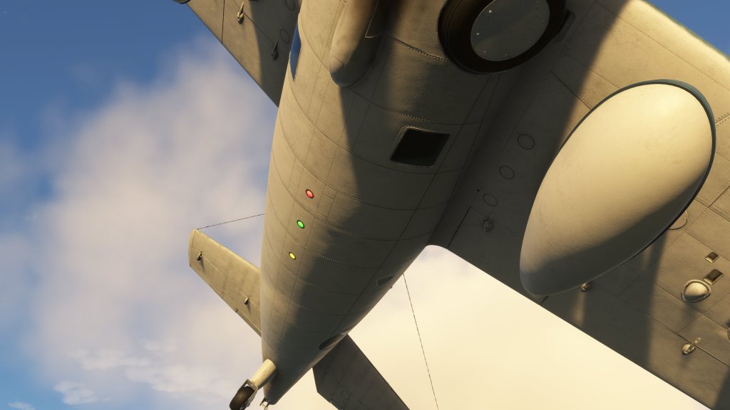 The Wildcat comes with all of the recognition light systems that the real one did. Dull blue formation lights, white, red, green and yellow recognition lights, extendable landing lights, nav lights and so forth all work.