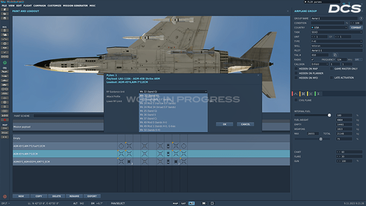 The different bands will be selectable in the mission editor once updated. From the looks of things mission editors will need to understand which radar bands are in their mission (or are at the target zone) so that the appropriate seeker can be fitted. How this will work in multiplayer remains an open question but hopefully there’s a good way for this missile to be used there too.