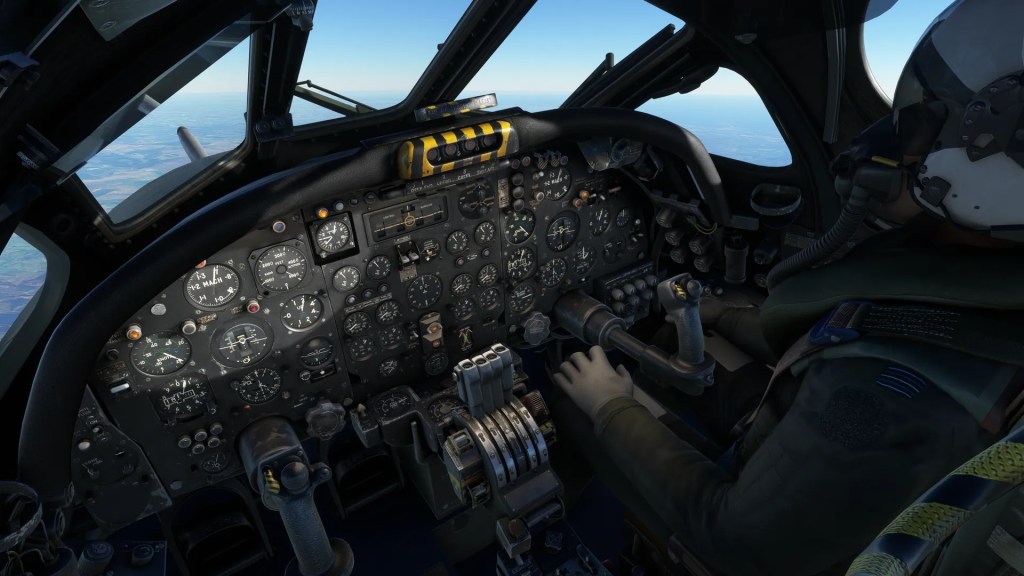 Meanwhile, work is being done to solve some practical issues with the airplane so that a single person in a flight sim can manage an airplane traditionally crewed by six people. For example, the much of the navigational controls are located in the rear cockpit so Just Flight are providing multiple ways to access these controls – a tablet/EFB up front will be one method, camera view options, keyboard controls, and hidden click spots are all methods available.