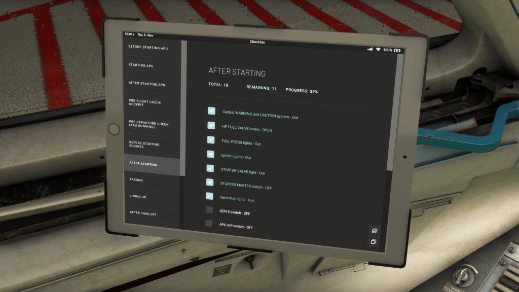 The EFB is fully functional with options for SimBrief and NaviGraph. That includes NaviGraph charts functionality which displays over 7,000 different charts at your departure and arrival airports. The tablet interface also has a good airplane manager as well with lots of options (including that GNS530). State saving is possible and you can click Cold and Dark and Ready for Takeoff modes.