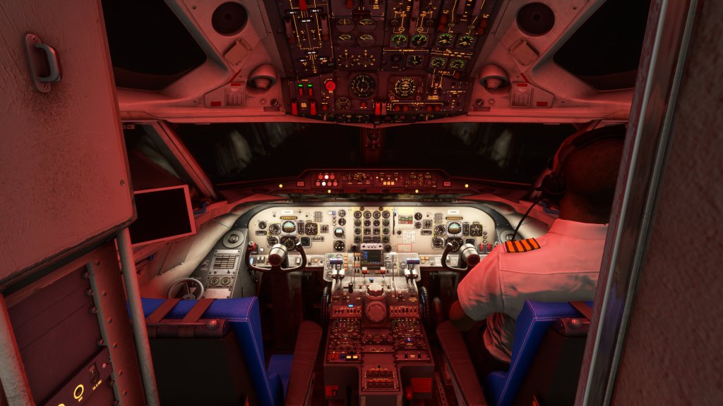 The interior lighting on this airplane is fantastic. Particularly so in the cockpit with warm incandescent bulbs lighting up the cockpit at night. The attention to the lighting and materials really comes together in a brilliant way here that feels impressively immersive. Exterior lighting is good too although I sometimes think the landing lights have a bit too much flare.