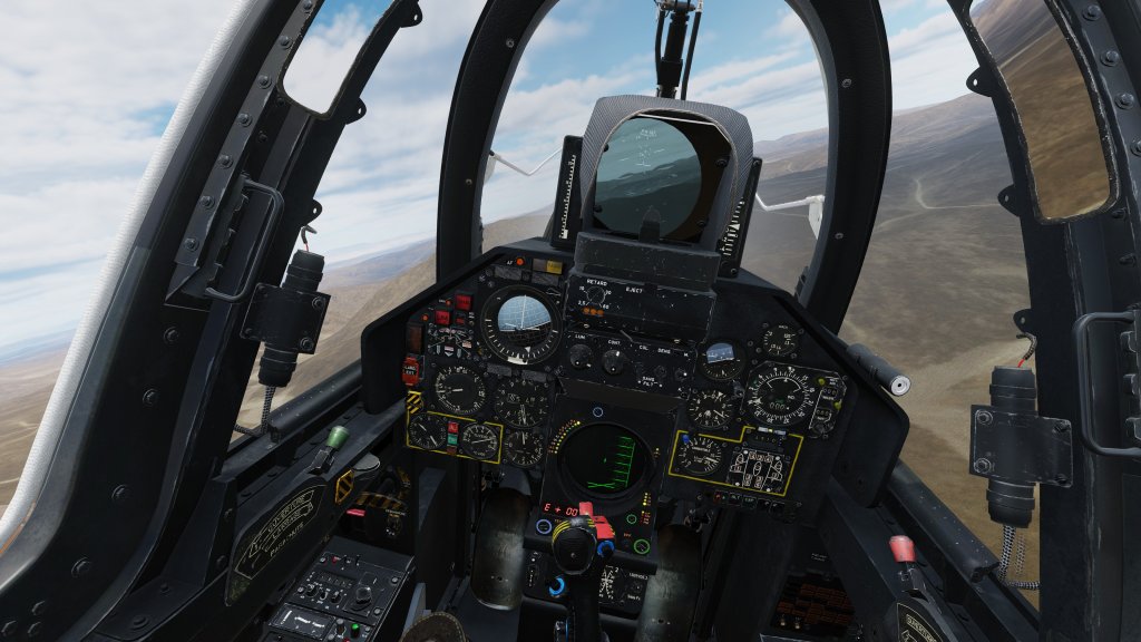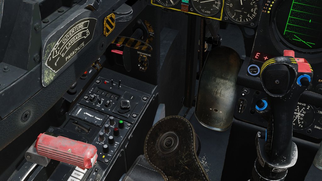 The back seat doesn’t have as good a view forward, unsurprisingly, so Dassault managed to create a remote camera system that pipes a video feed of the HUD area into the back seat making the back seater fully aware of what the pilot can see through the HUD. Aerges have modeled this extremely well with the black and white and bit grainy video being piped into the rear seat. Its fast, responsive, and I’ve had no problems with it. You can make out what’s going on while also feeling like this is based on technology of yesteryear.
