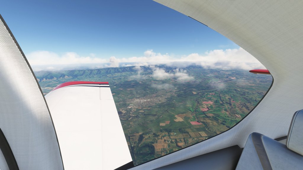 On with the flight and I elected to climb to 5,000 feet at first and then later 8,000 feet as I crossed over some slightly more rugged terrain. Low clouds and a few stormier looking formations also had me climbing up above that. As I crossed over Napier and Hastings I began to spot mountains on my right. These were Ruahine Forest Park at first and then later the taller peaks located inside the Tararua Forest Park. Turbulence increased as I neared the second mountain range and I took the opportunity to do a bit of hand flying… as well as put on the Lord of the Rings soundtrack. It seemed fitting as I flew over some locations that were used in the movie.