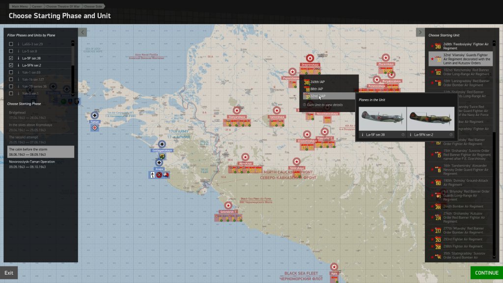These days I’m more single player than multiplayer and so I think its important to report what you have available here. The La-5F shares single player Career experiences with the La-5FN. Both fighters become available the same time in the Career and are constrained to the same 32 GvIAP regiment in the later two chapters of the Battle of Kuban campaign. I was kind of hoping that the La-5F might become available a bit earlier but I know that the work done on Career mode is accurate as far as in-service dates so this is, I’m sure, how it was.