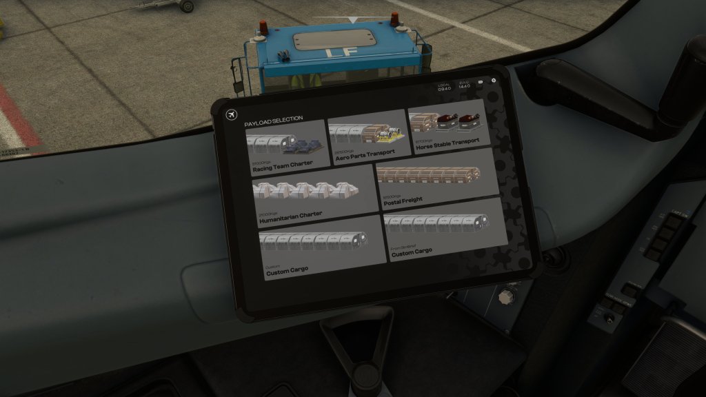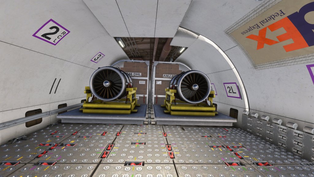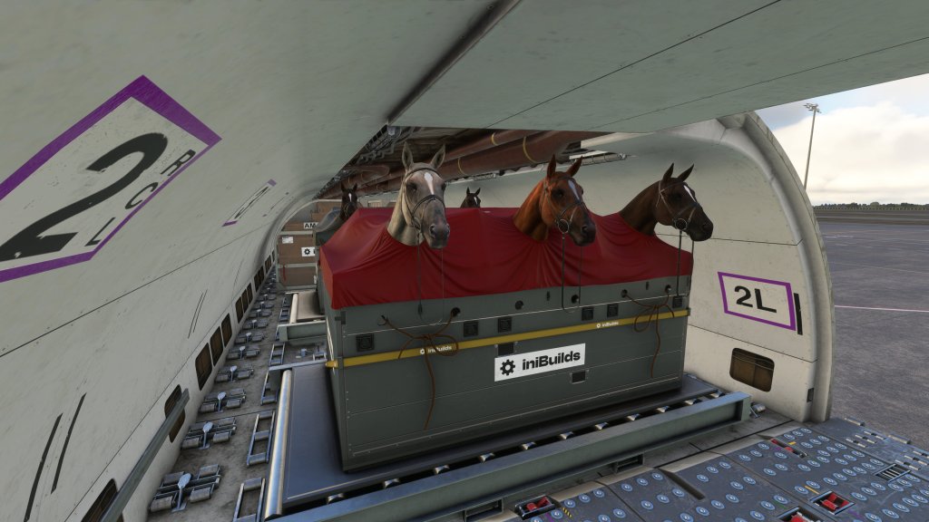 iniBuilds have also done a great job of modeling some unique cargo options. You can “walk” the camera back there and have a look at what is in the hold. That includes aerospace parts, F1 race team parts, humanitarian relief and even horses. You can also select more generic cargo crates too which helps cover a wide range of cargo types. The impact is both visual but the presets also include realistic weight too which definitely has a simulated impact.