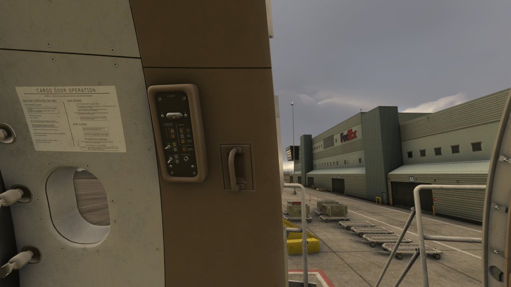 iniBuilds have also made the cargo door fully functional with the ability to operate it either from the EFB or from a control panel in the cargo hold. I love the option! Its immersive and enjoyable! Folks with GSX, a third party airliner ops plugin, can also see freighter lift vehicles pulling up to the aircraft though I have not tested this myself.