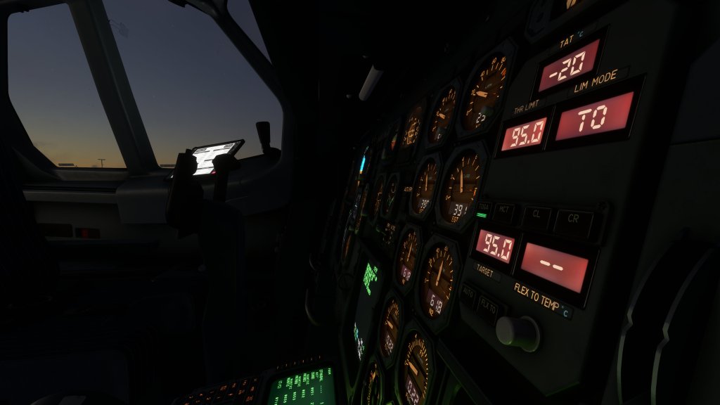 I also want to take a moment to appreciate just how good the cockpit screens have been done. These are old style CRT screens and they have been modeled with the appropriate resolution and a bit of that old school CRT fuzz. They bath the cockpit in a greenish glow at night too which looks spectacular – the A310 has the same screen but it just doesn’t look quite as good as this.