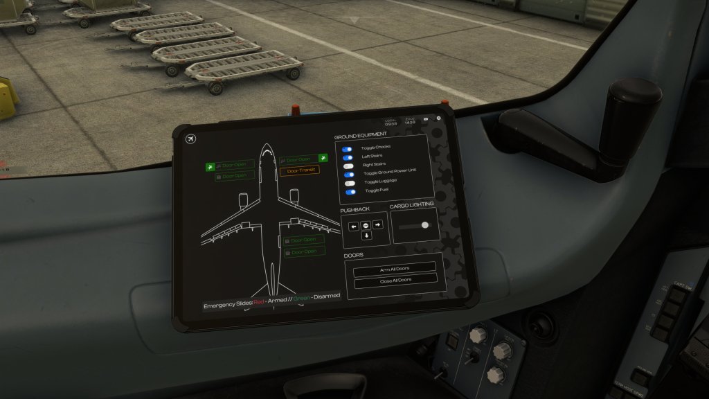 Emergency evacuation slides are also present although I’ve only activated them accidentally rather than with intent so far. Not sure if user error, EFB UI issue, or something else contributing to that. I still need to work out why that’s happening.