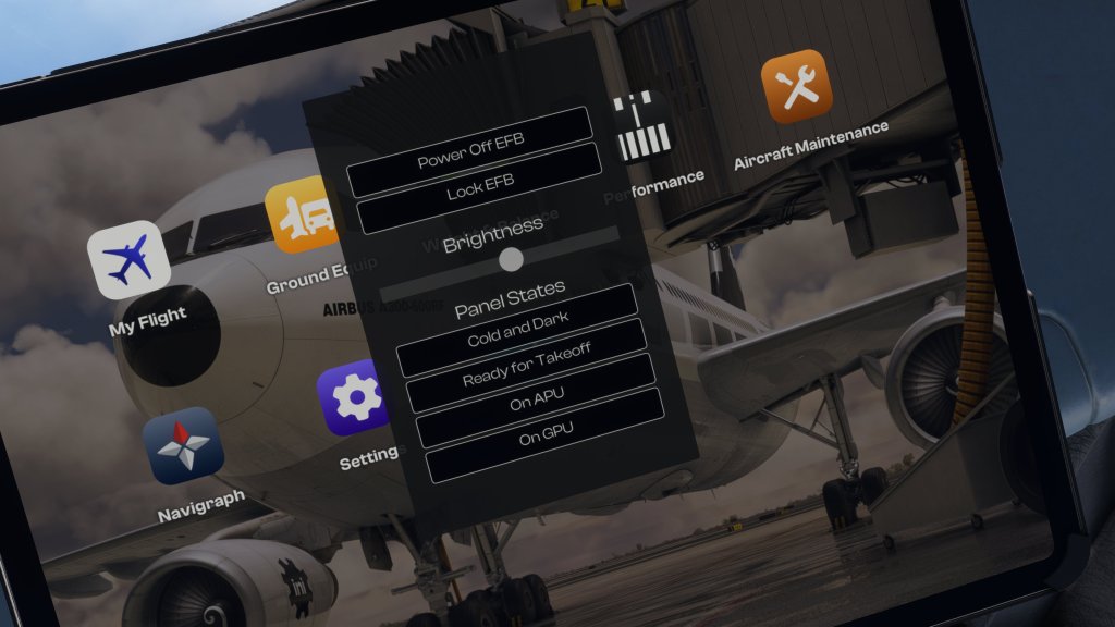 iniBuilds have some pluses and one minus in this category. On the plus side, the EFB have a bunch of panel state options that let you quickly jump from one state to another and the system works very effectively to let you start from cold and dark, get the GPU on and do some setup, or select ready for takeoff. Be warned that you can’t jump from state to start without undoing what happened before so if you want to go on GPU and configure the MCDU with a flight plan, selecting ready for takeoff will undo all of that.