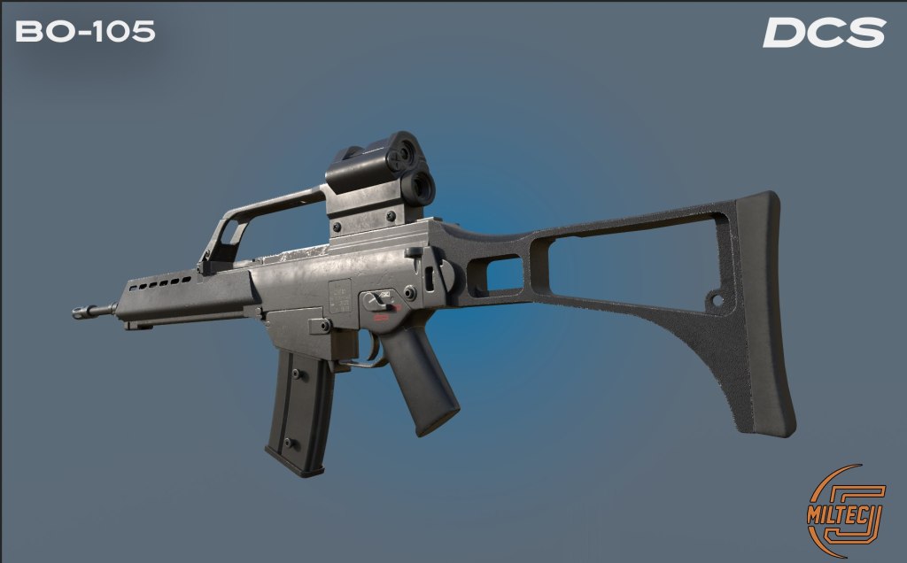 A few months back we saw a short clip from Polychop’s OH-58D with the left seat player firing an M4 out the window at a technical. Well it looks like Miltech-5 aren’t going to be left out on doing that in DCS either as their DCS: Bo-105 helicopter project is gaining a G36.