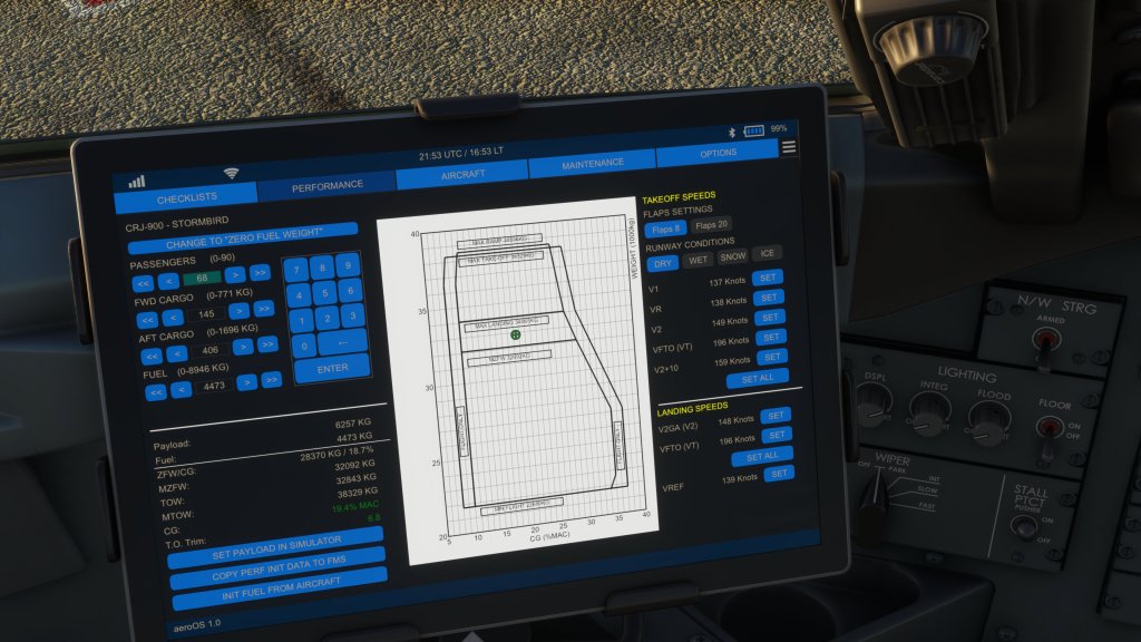 Aerosoft have smartly put an EFB in their CRJ and its quite good. It includes easy, one click, state control which means that you can start your jet cold at a gate and then do some minimal setup before clicking the state that you want the airplane to be in so you can get going quickly. I’ve made use of that on other airliners that I’ve reviewed and I appreciate it quite a bit here too.