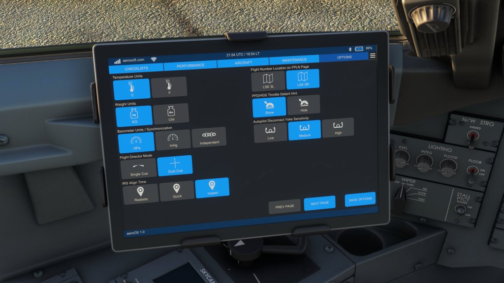 Like most modern airliners, you can plug in important variables like zero fuel weight and calculated V-speeds for takeoff. Aerosoft also makes this easier to do as well by adding one-click options in the EFB to configure everything from fuel to passengers to those variables and even insert them into FMC without much interaction in the FMC itself. Better than the systems I’ve seen on most other airliners actually.