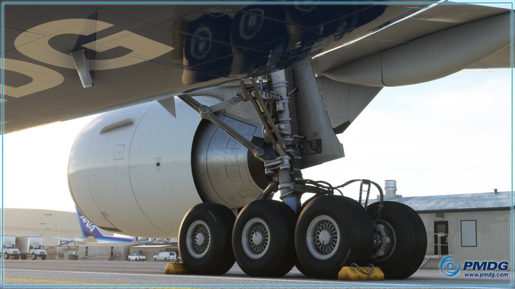 The other image, released in a previous update I haven’t reported on yet is below showing off the landing gear, wheel chocks, and the reflections evident in the undersurface of the fuselage. The 777-300ER is also confirmed as being the first to release – something I’m not sure if I’ve reported on previously. That’s an interesting turn of events as many assumed the -200 might come first.