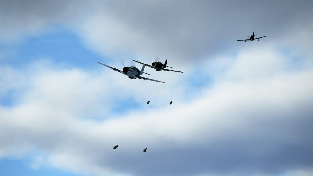 A few missions involve strapping 500lb general purpose bombs to the wings and taking off in search of ground targets. An early mission, for example, has you bomb German fortifications at Cherbourg which proved to be memorable with its highly explosive secondary explosion trigger making for extra fireworks after a successful bomb attack.