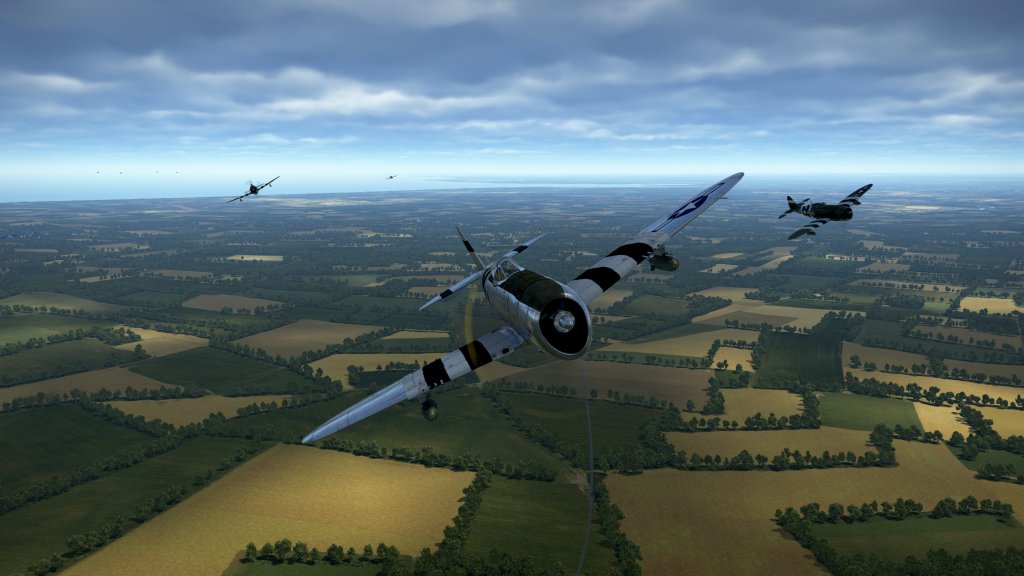 There’s also all of the other little things. The squadron codes, the mix of D-Day olive drab and aluminum schemed Mustangs and Thunderbolts flying around, the occasional but deadly presence of the Luftwaffe entering the fray with their own appropriate schemes. Also, the parked aircraft, trucks, and other doodads scattered around the airfield. It all helps with the immersion and for the history buffs this is all laid out in a historically realistic combat scheme.