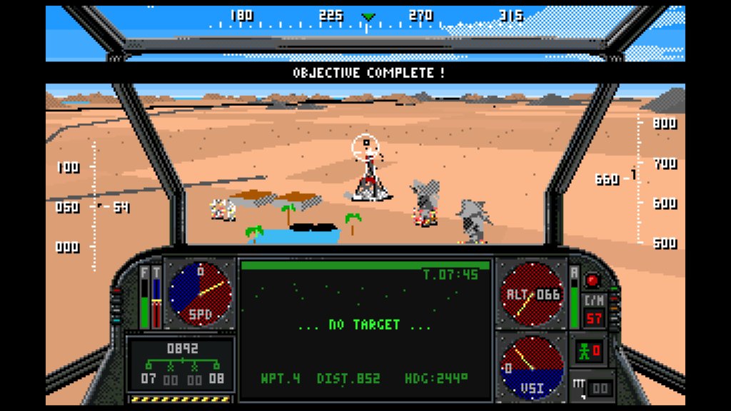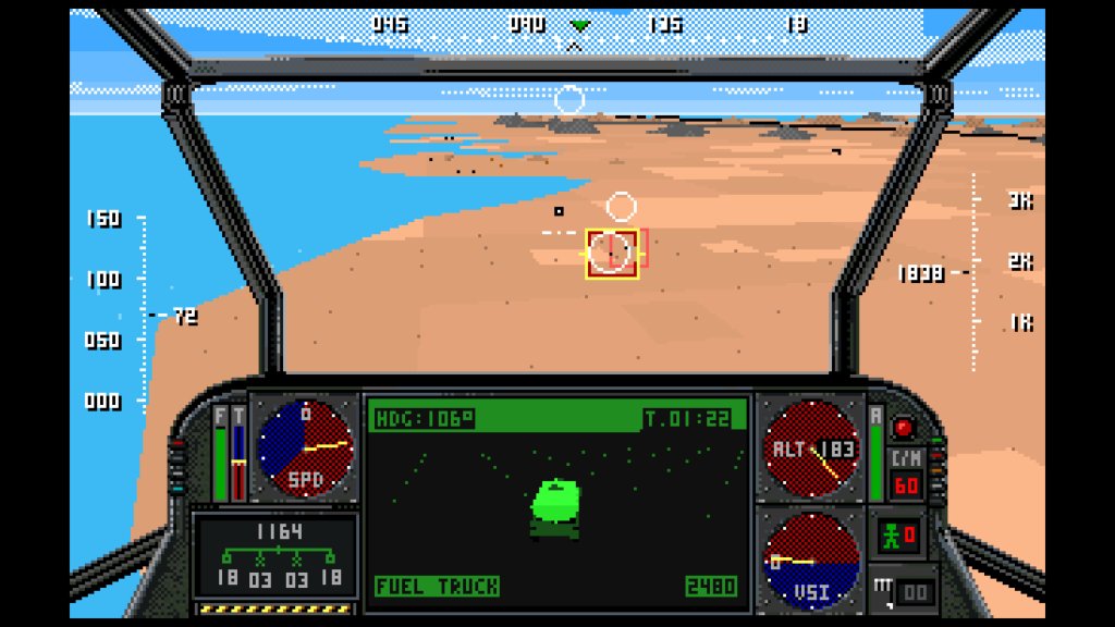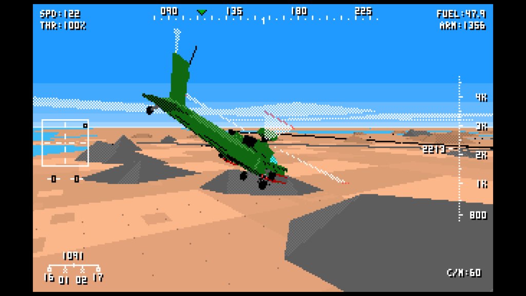There’s no denying that this doesn’t simulate a helicopter’s flight model the way you’d expect in 2024 but back in the early 1990s this was good enough to get us in and blasting enemies with quite a bit of satisfaction in just a few minutes. And even in 2024 there’s quite a bit of joy in just being able to jump in and go!
