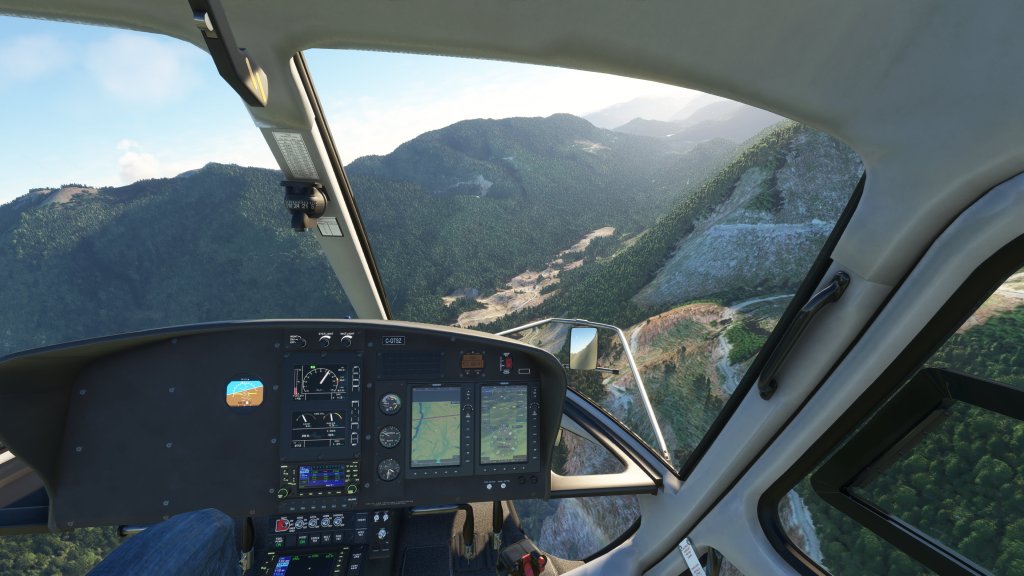 As is typical, my initial attempts at a hover were met with limited success but I increased the collective and powered my way out of BC Helicopters. Hovering can come later! Let’s go flying!