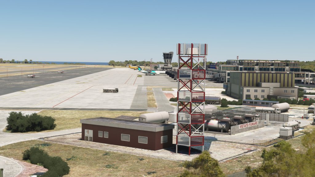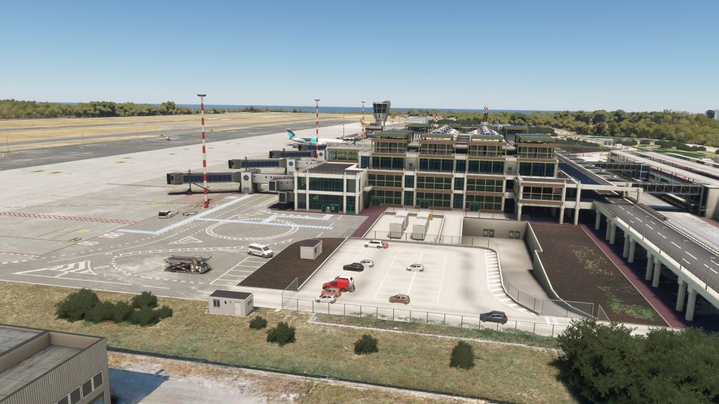 Here are some images of the airport itself. It’s a single runway airport with facilities for airliners and general aviation too. A number of airlines pass through here including Ryan Air and Air Dolomiti (part of the Lufthansa group). The city of Bari nearby is covered by the Italy world update photogrammetry so it has some custom looks. It’s also just a beautiful city on the coast of the Adriatic.