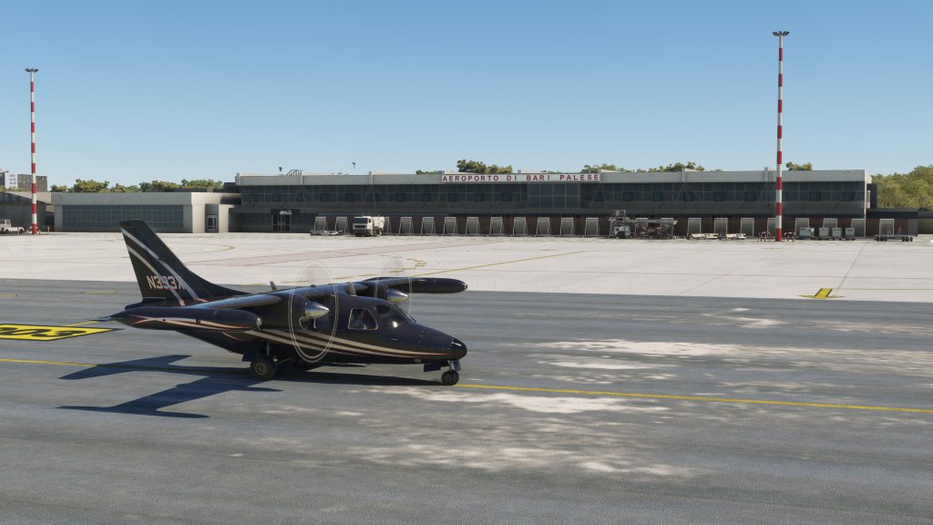I recently picked up two pieces of scenery that I haven’t had a full opportunity to use yet. LIBD Bari Karol Wojtyła Airport by Super Sonic Design (which I purchased through Orbx) is an airport that I passed through last year on my way to southern Italy and I made this my starting point with the MU-2.